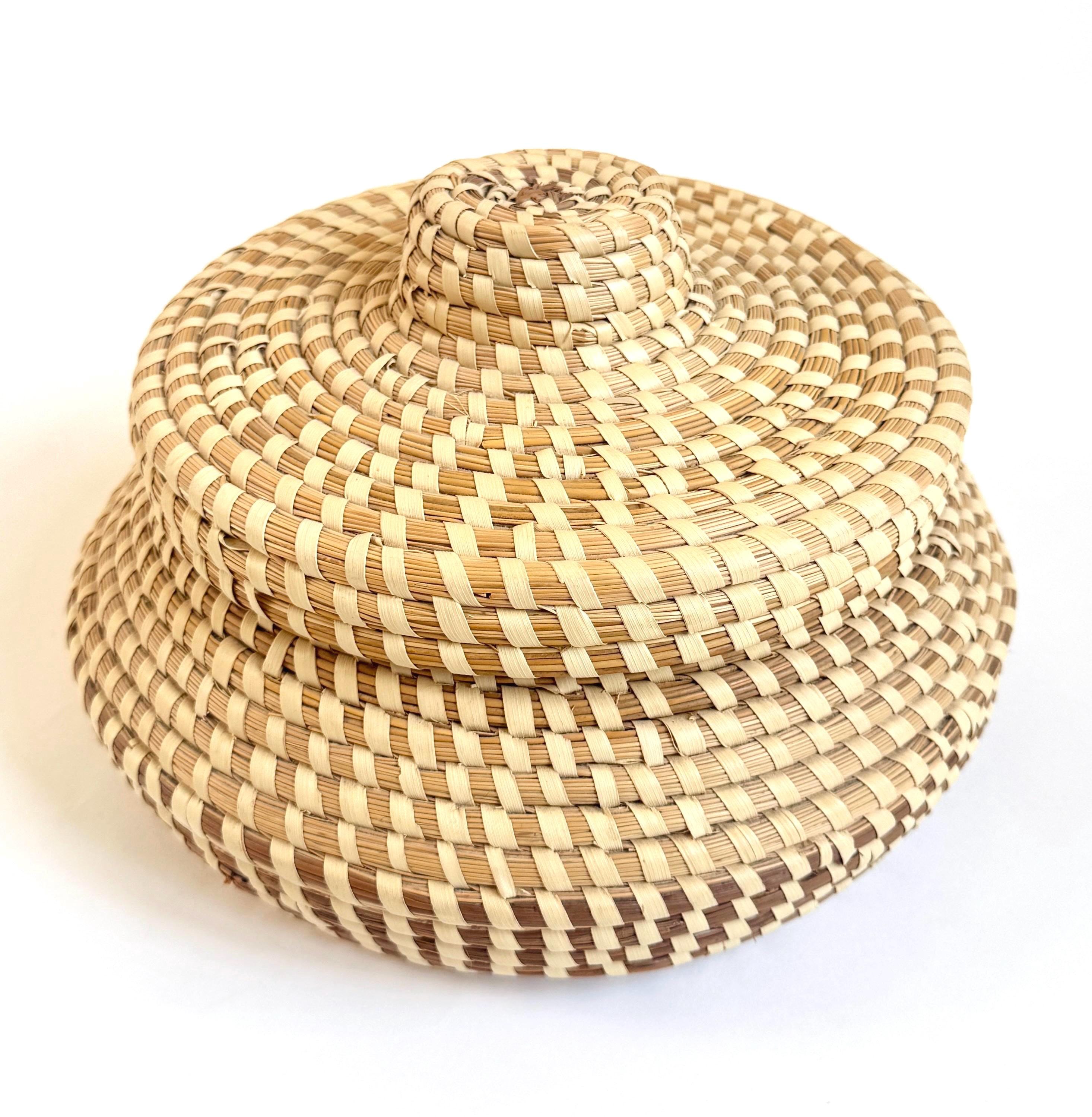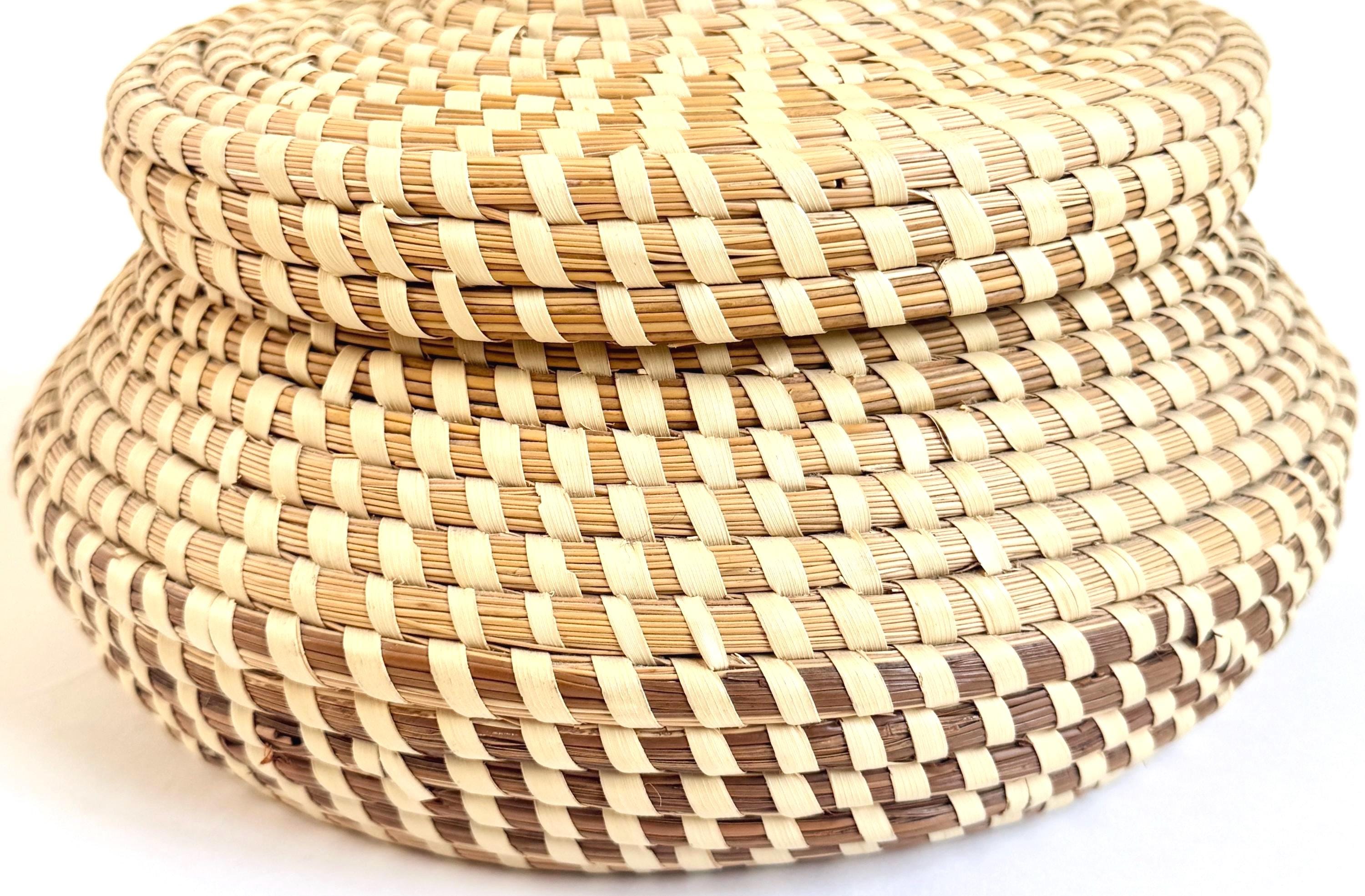 Vintage Charleston Sweetgrass Basket Finely Woven 9.5" Round Circle Lid Vintage American Gullah Folk Art Coastal Decorative