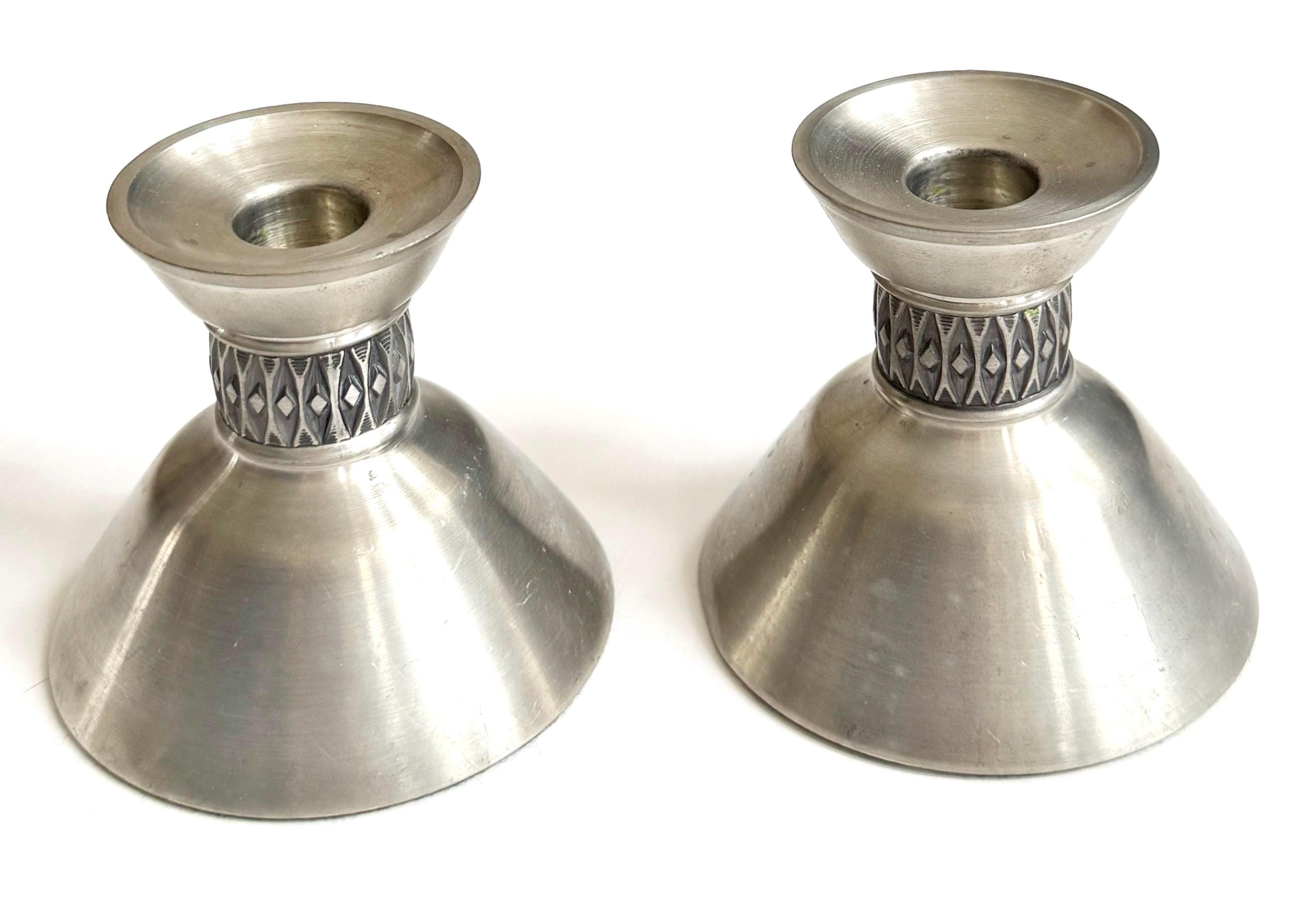 Vintage Måstad Norway Pewter Candlestick Holders Scandinavian MCM Pair of Silver Tone Candle Holders Minimalist Sleek Sculptural