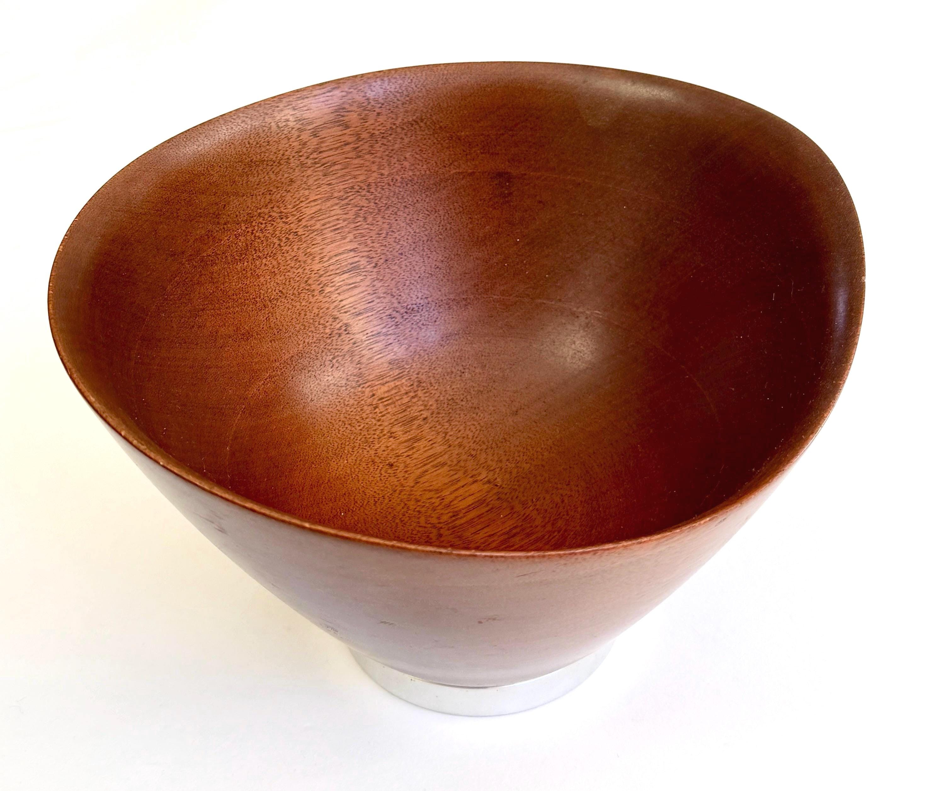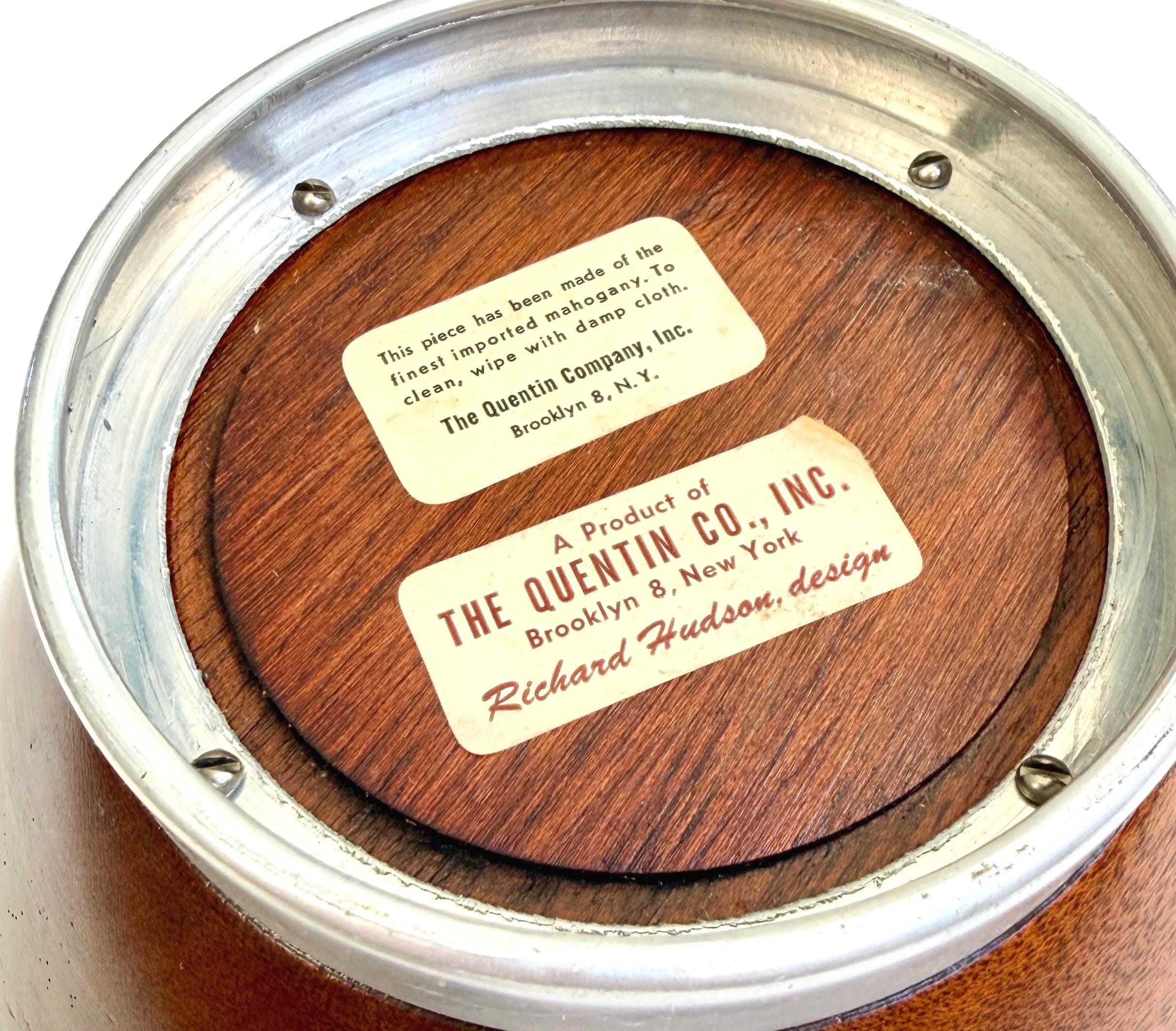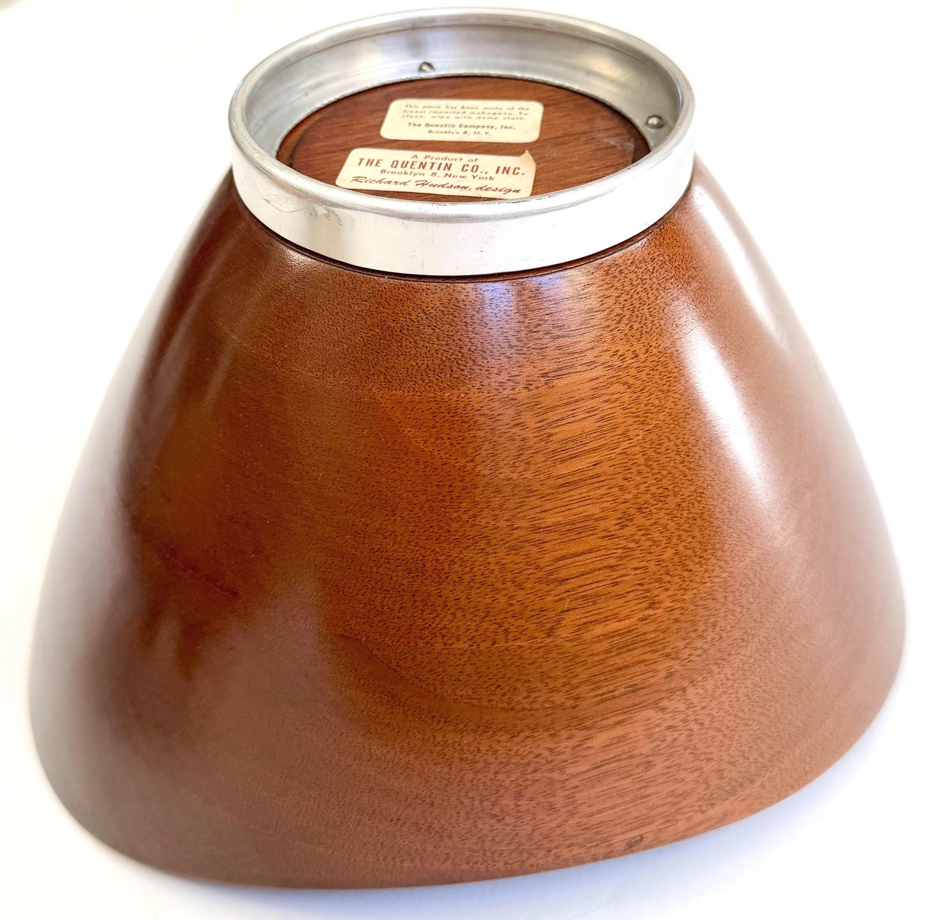 Handsome vintage Mid Century imported mahogany salad bowl designed by Richard Hudson for The Quentin Co., Brooklyn, NY