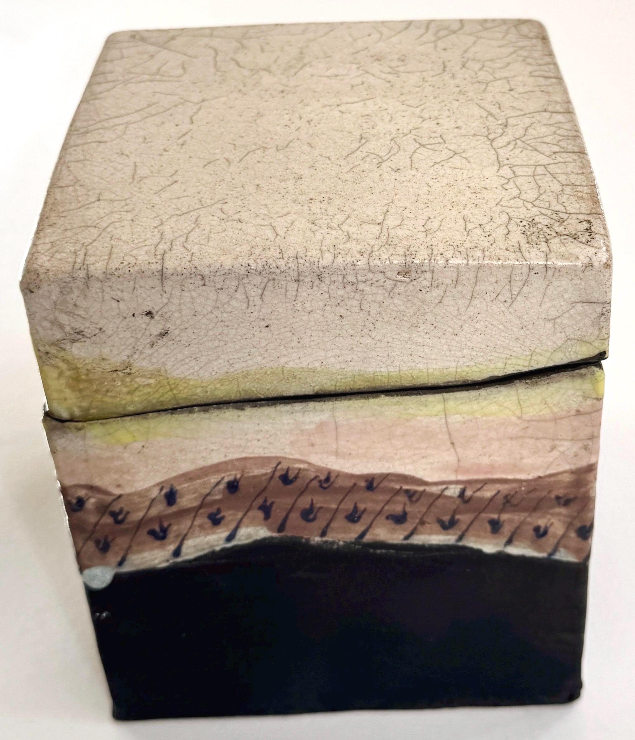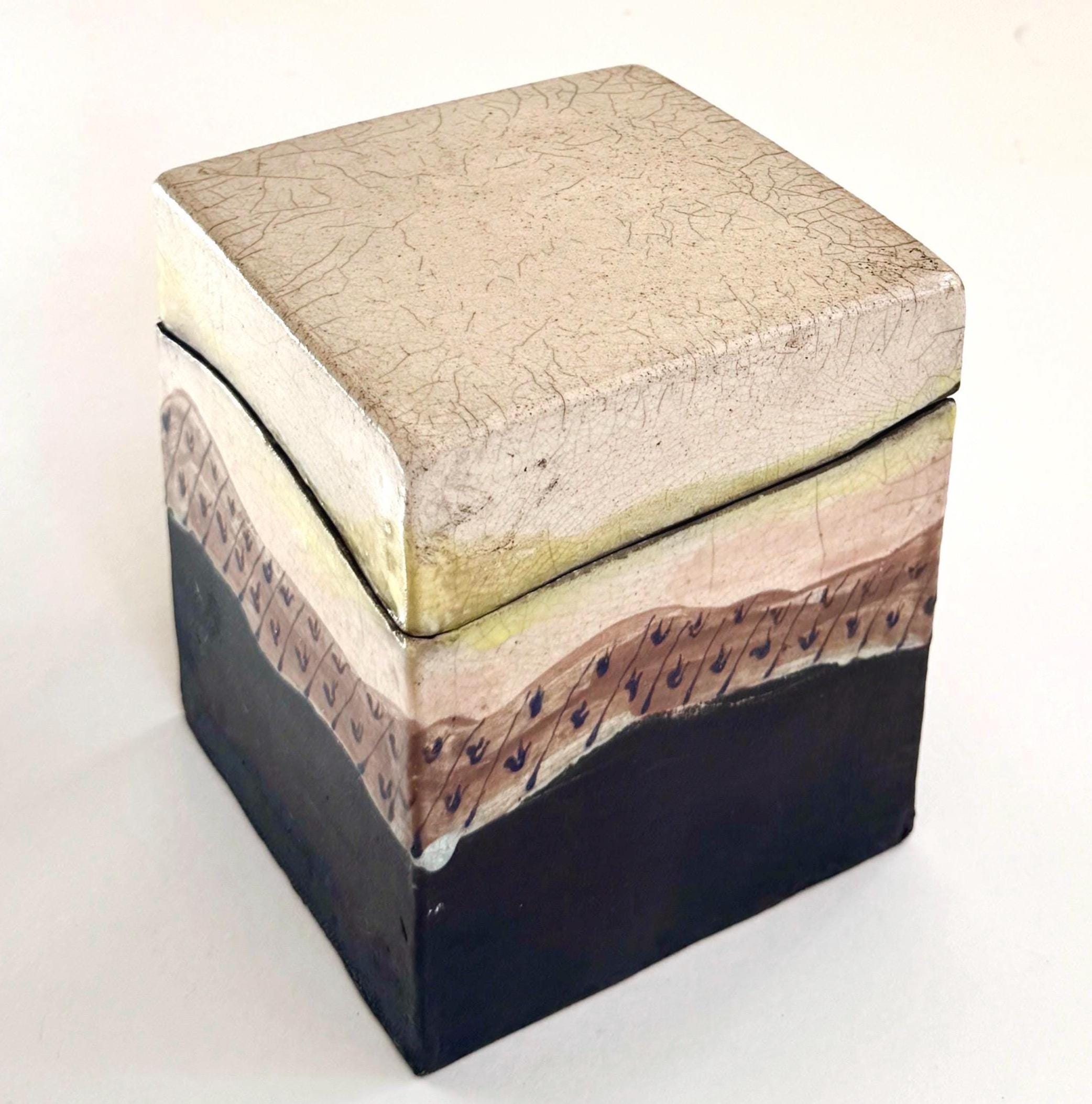 Vintage Raku Pottery Box Signed Murray Studio Ceramics Glazed Beige Neutral Earth Tone