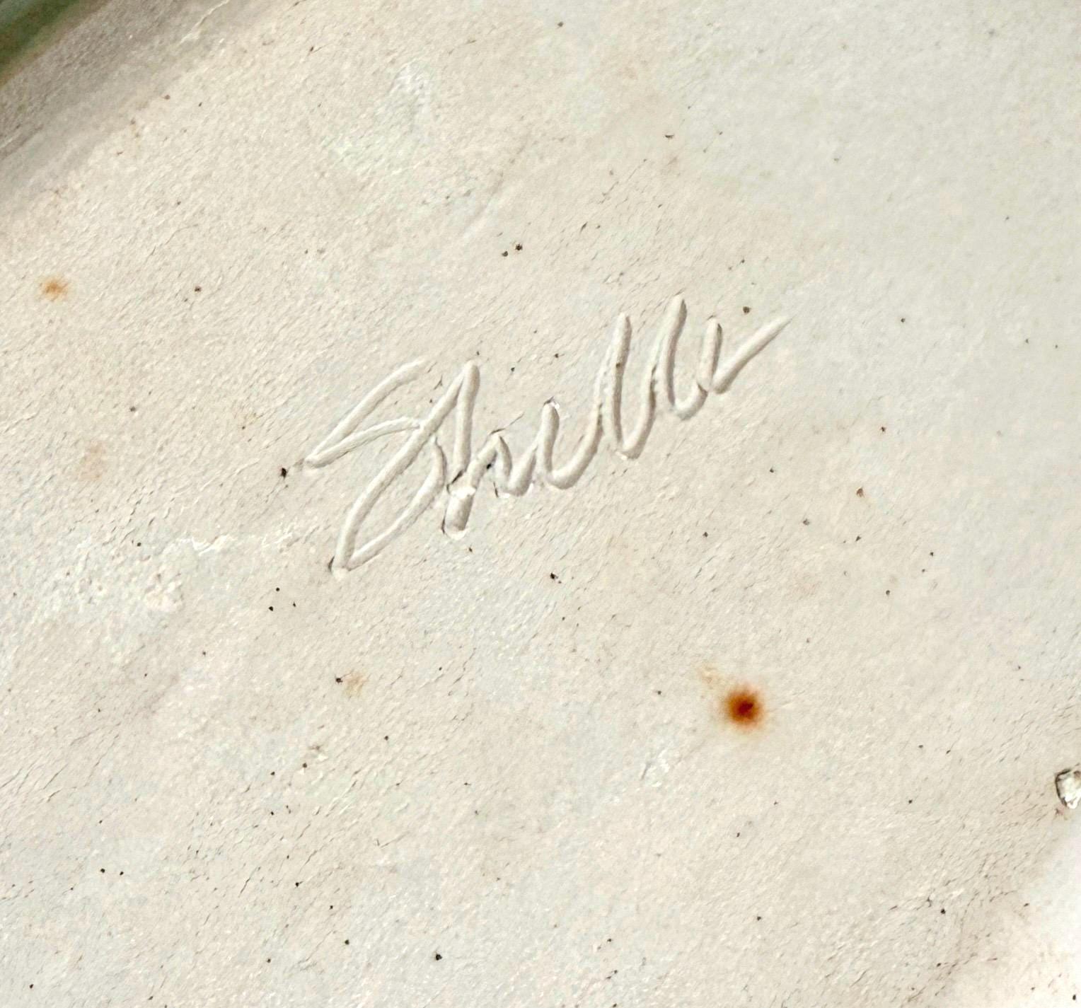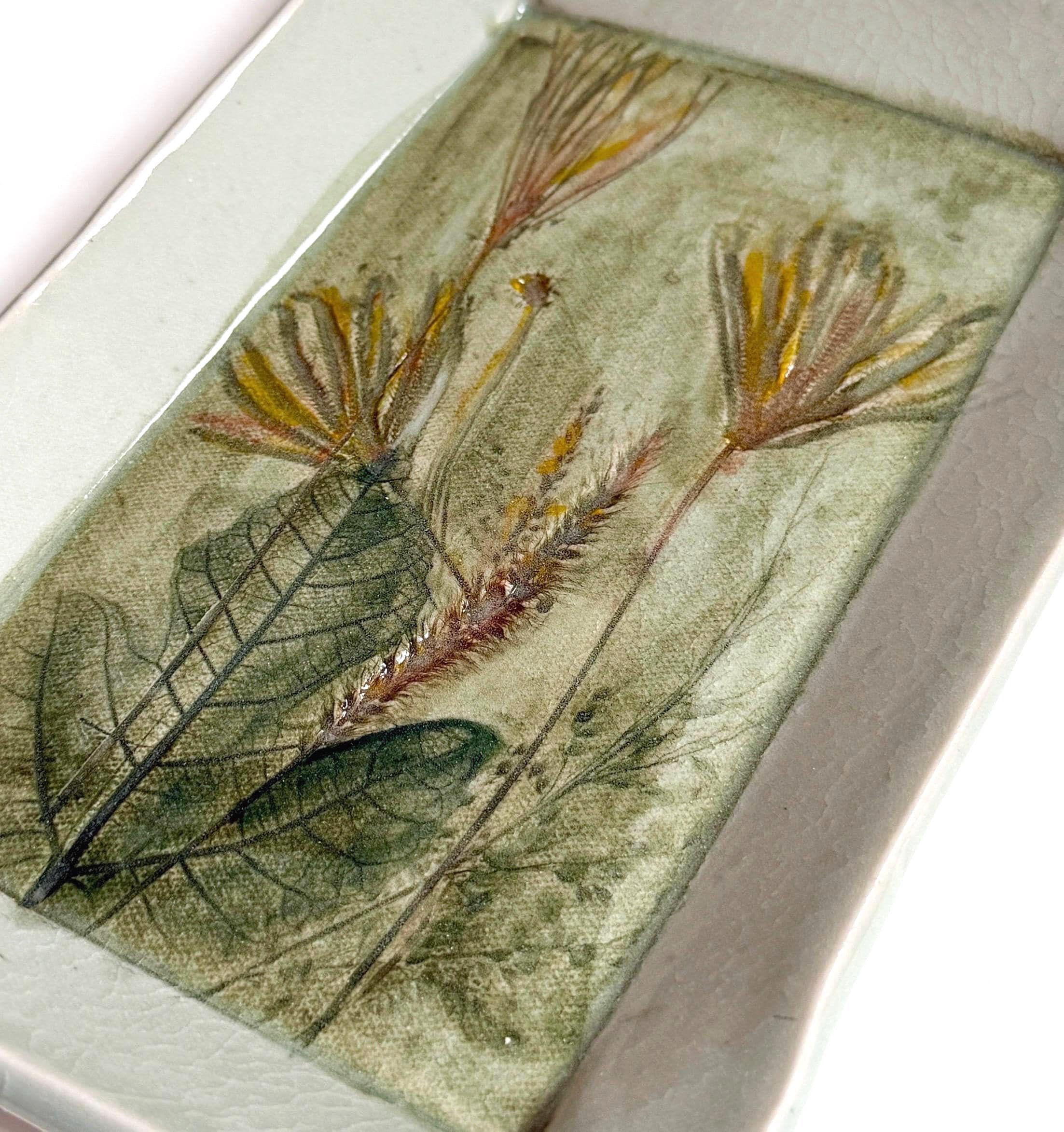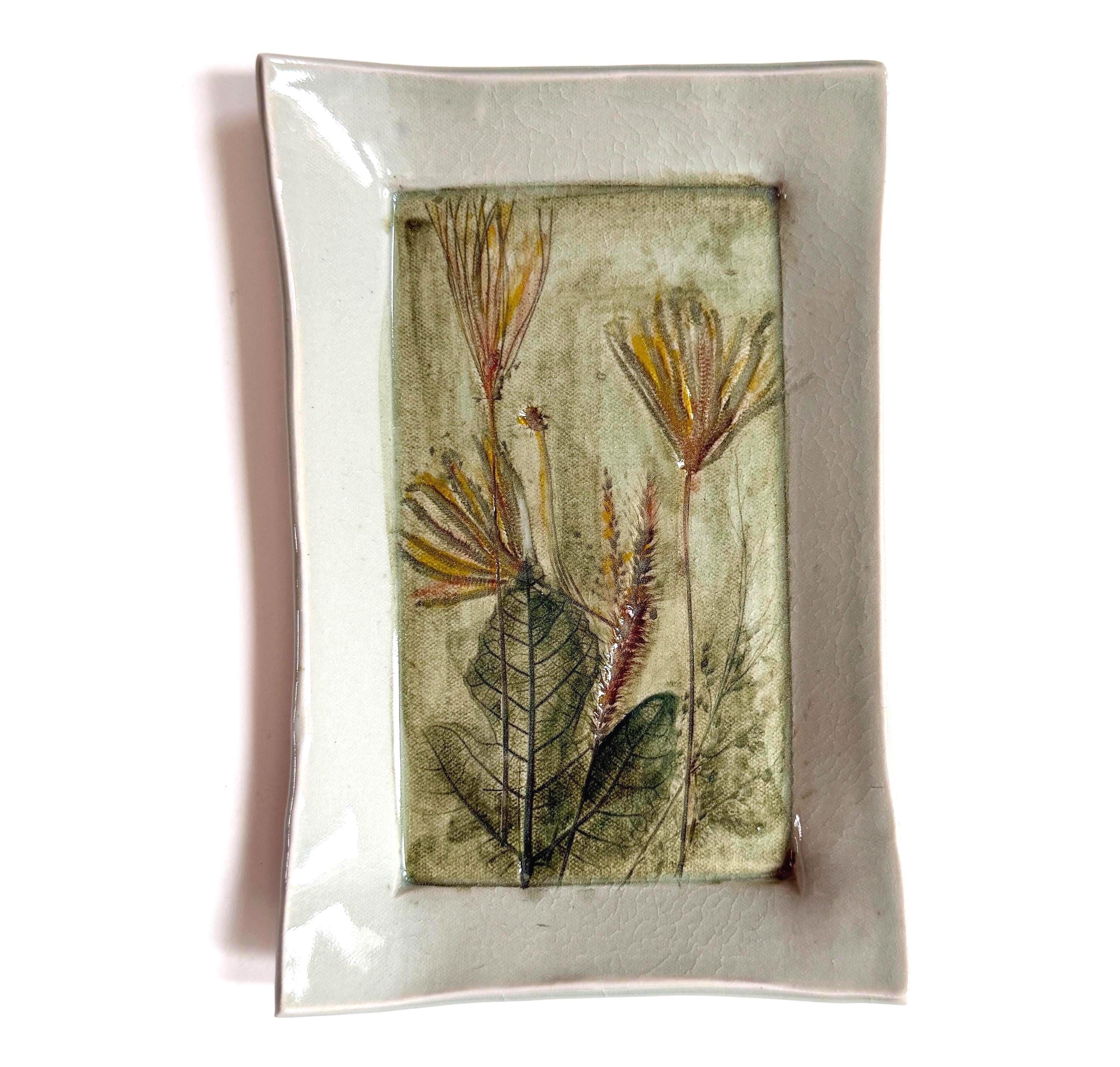 Vintage Leaf Studio Pottery Dish Etched Leaves Celadon Jade Green Glaze