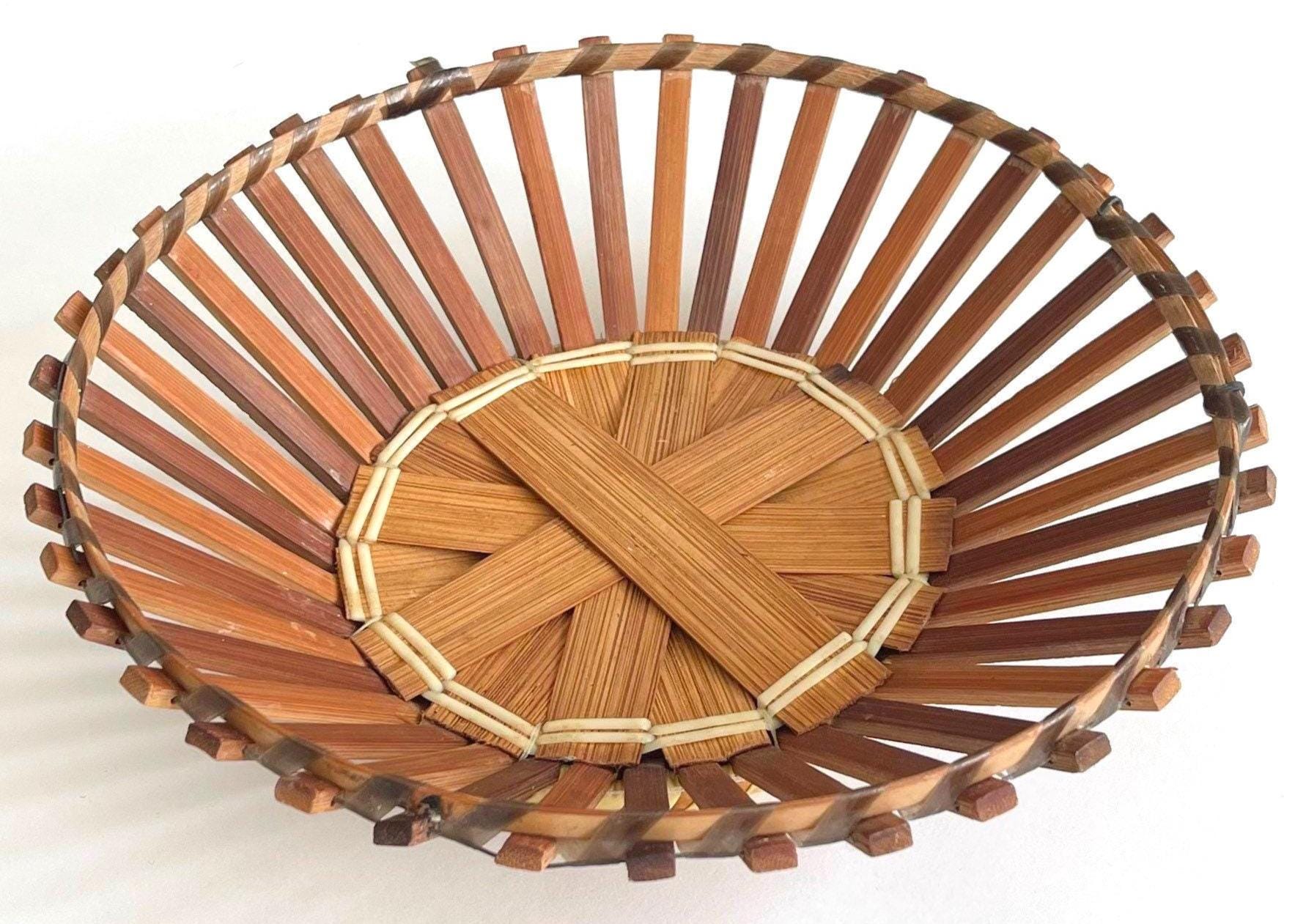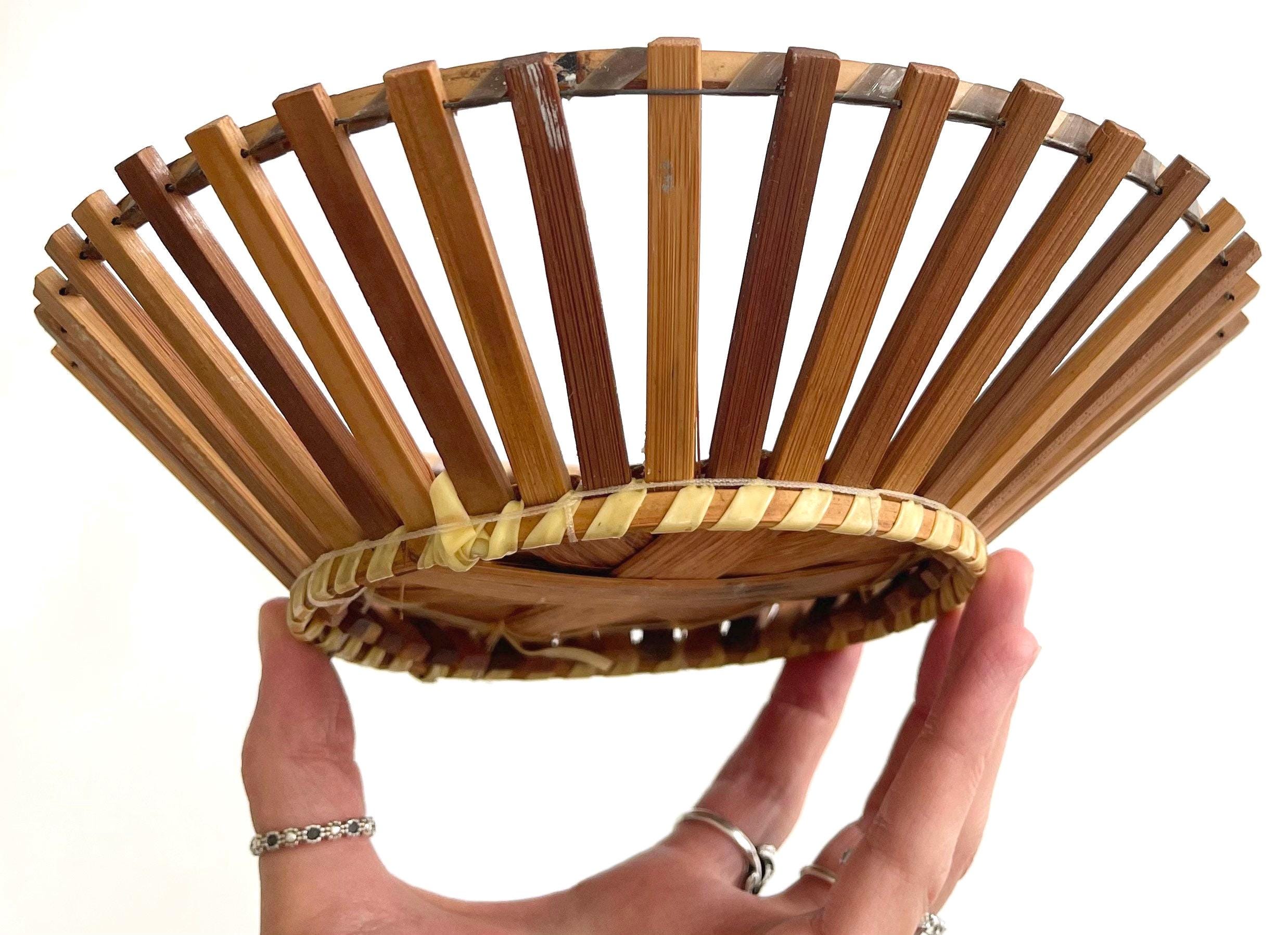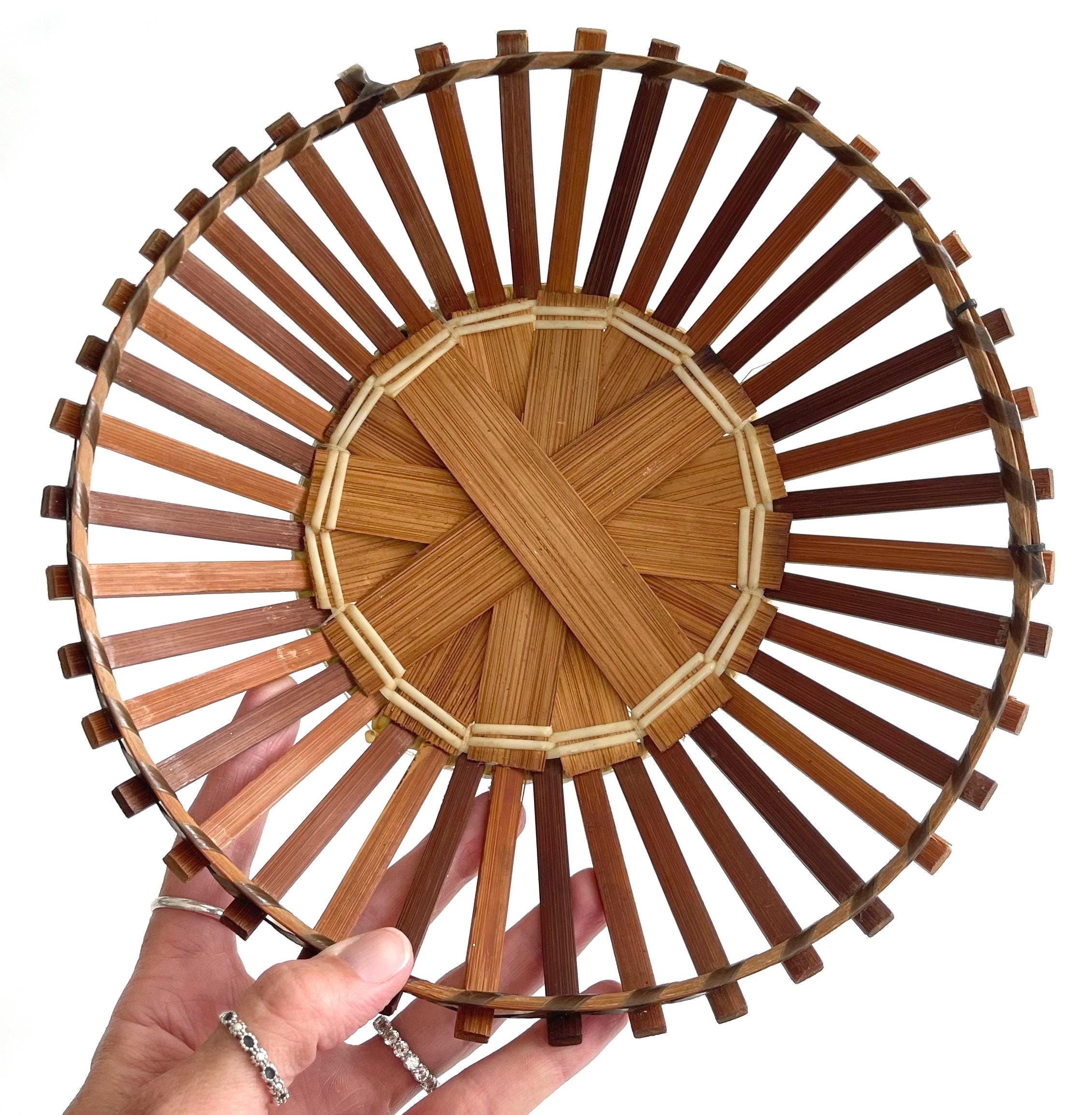 Mid Century Vintage Round Wood Basket Bowl Scandinavian Danish Design