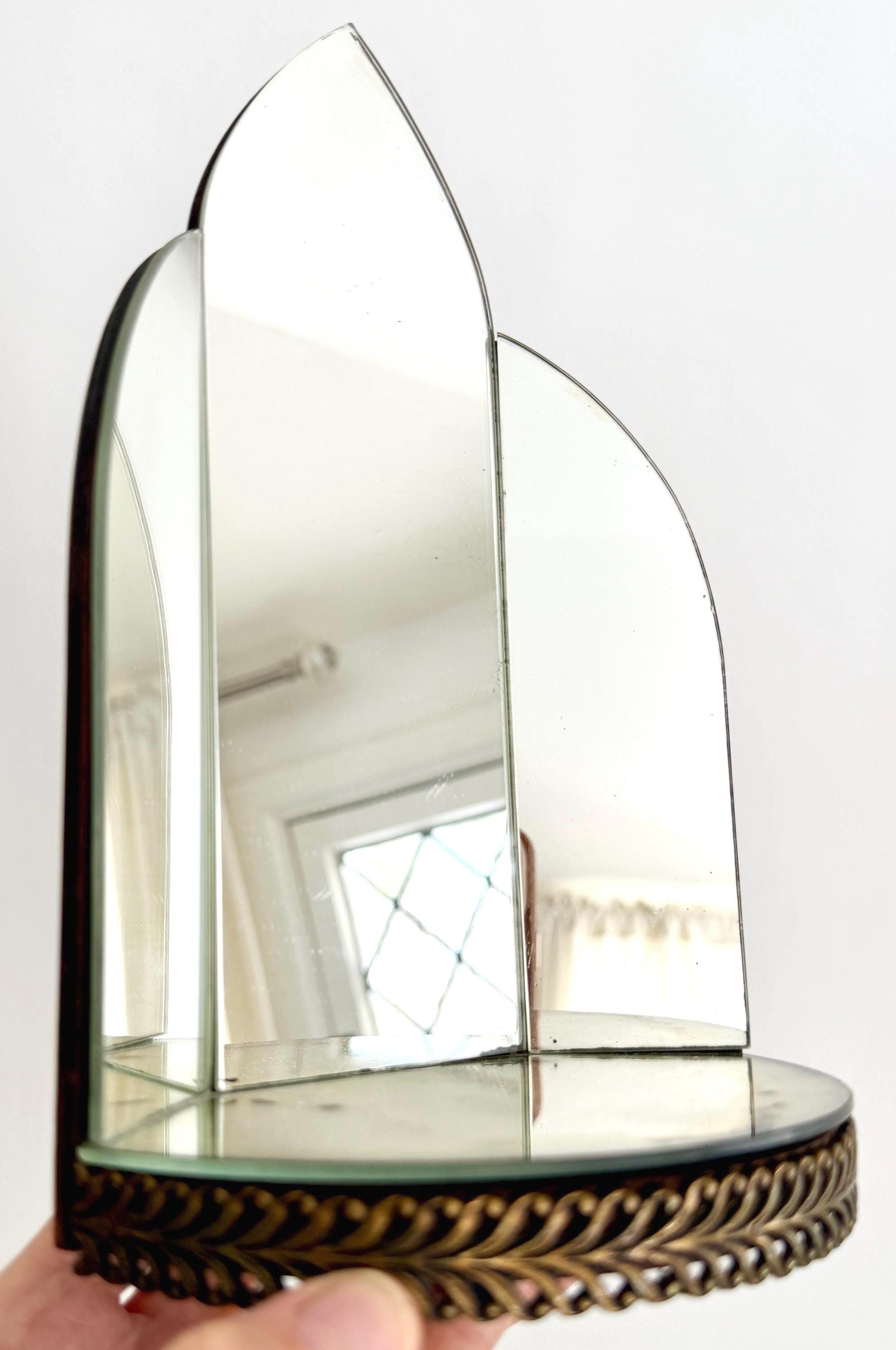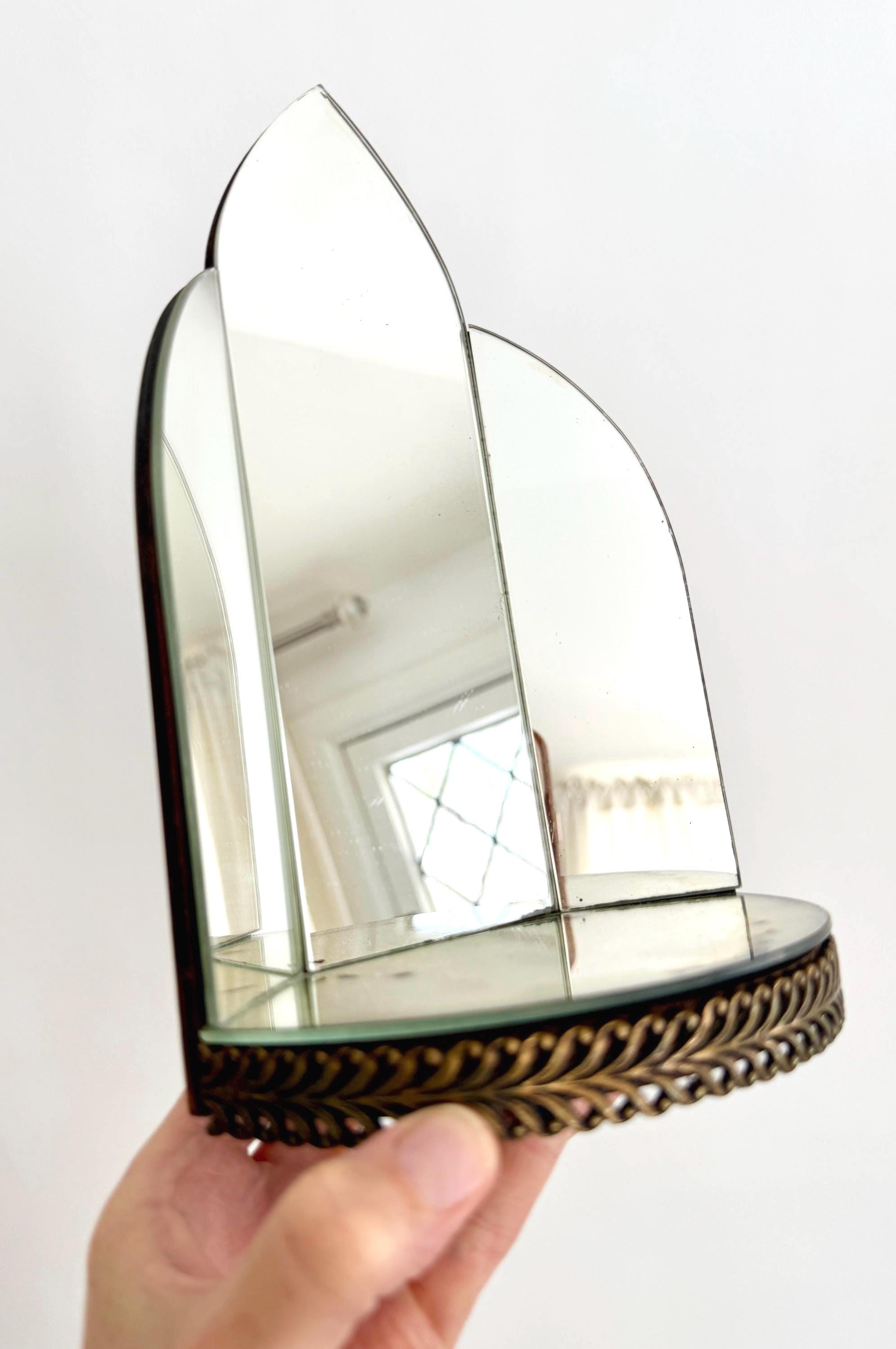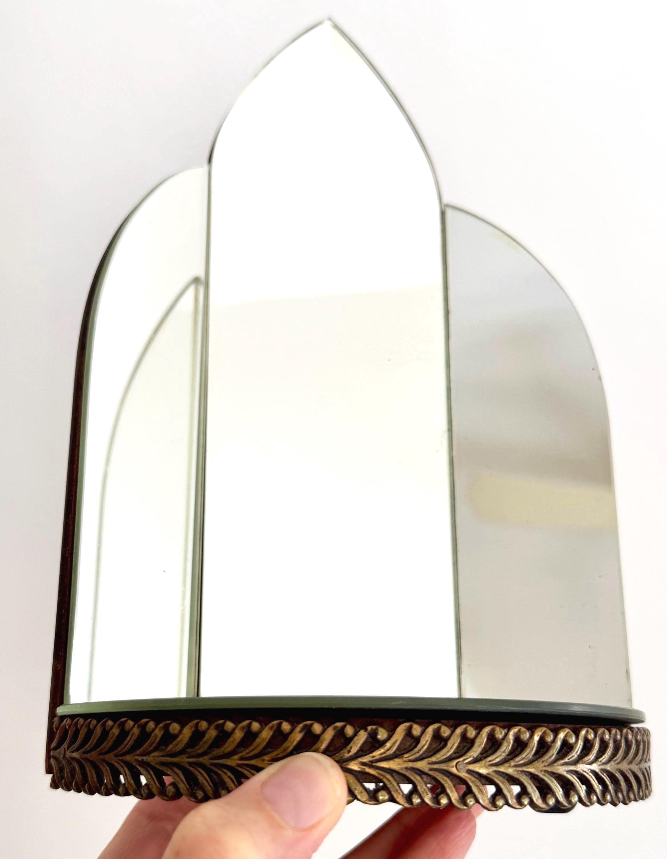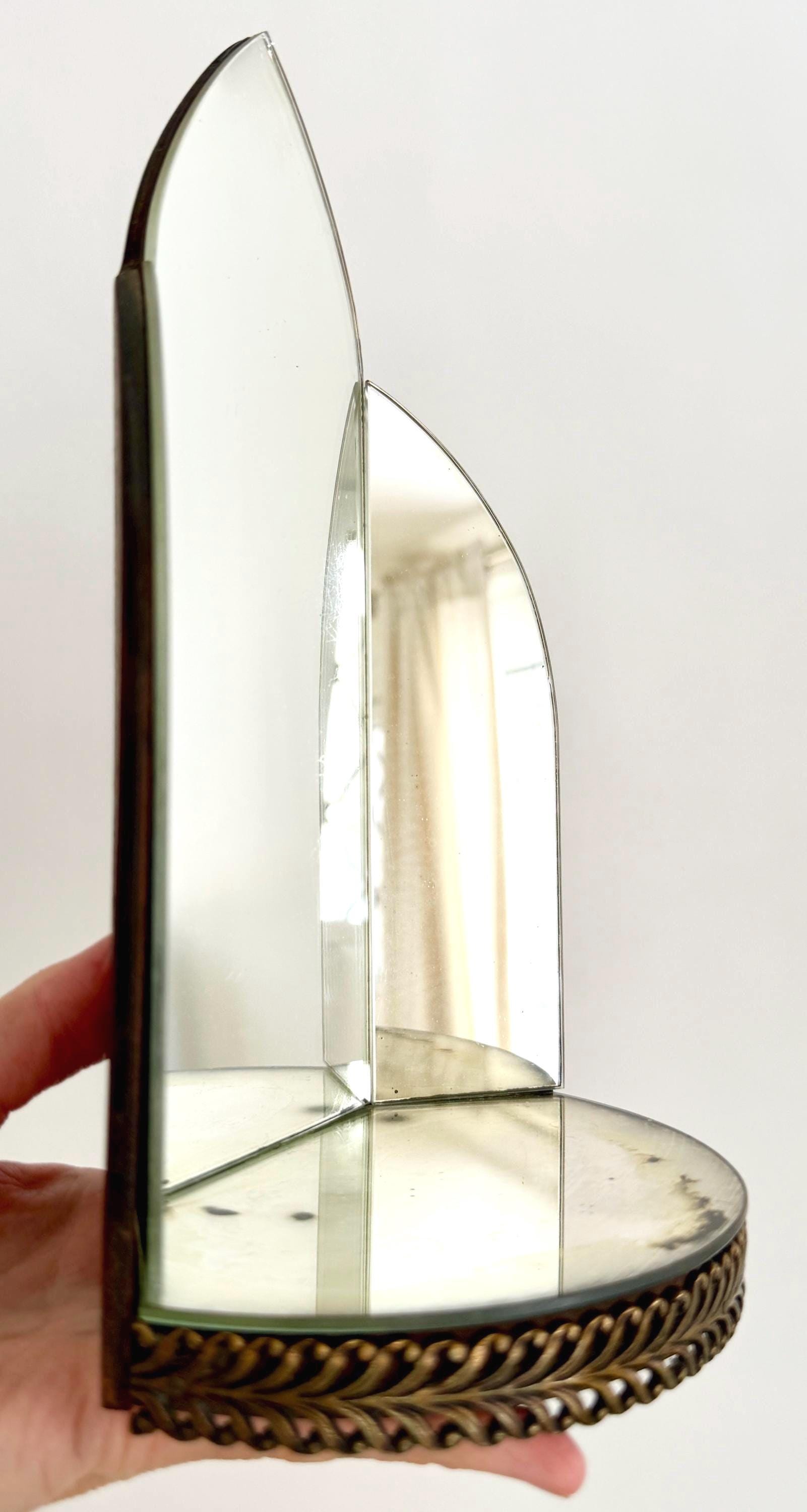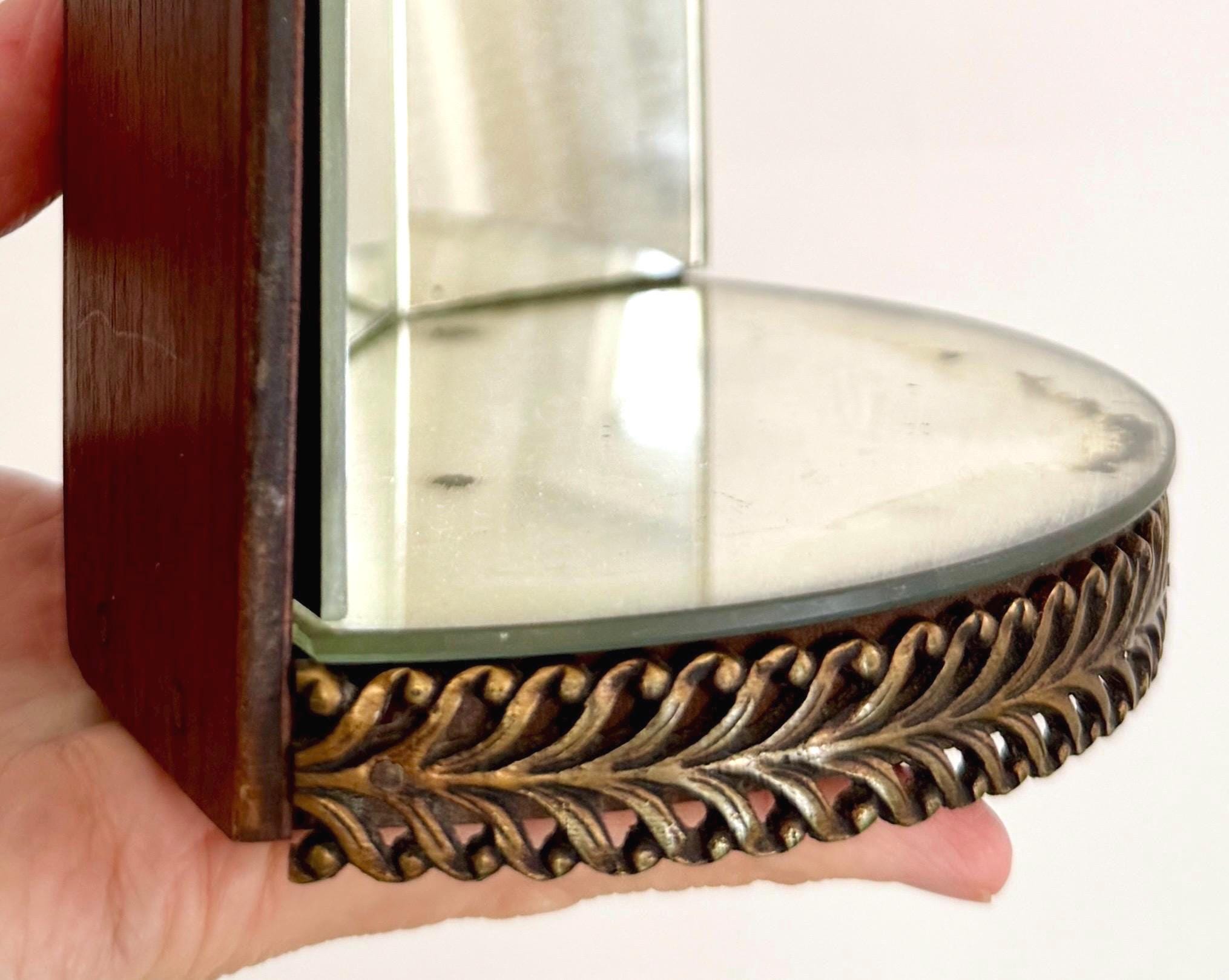 Vintage Mirrored Altar Shrine Nicho Angled Glass Mirrors Wood Base Decorative Brass Trim