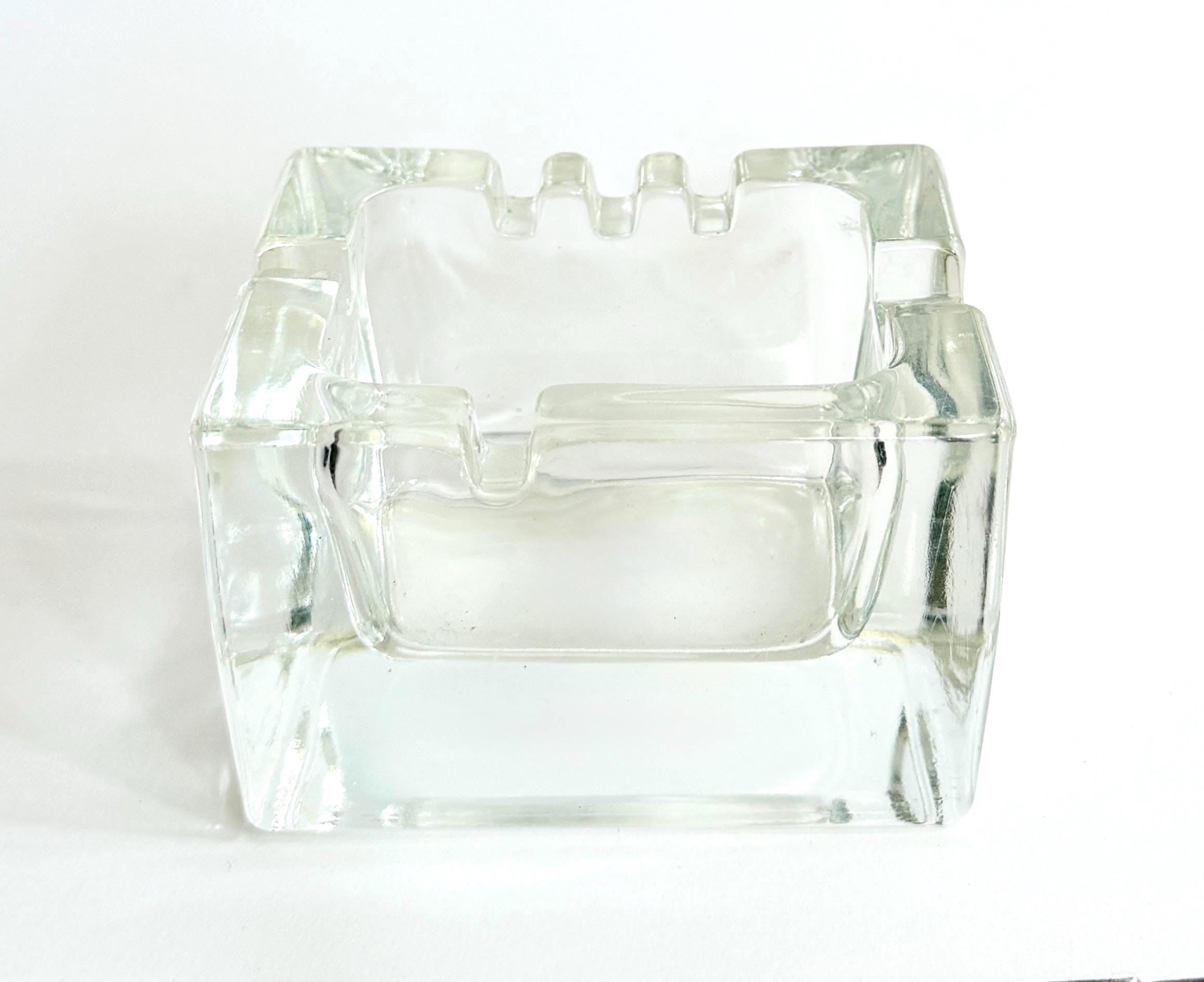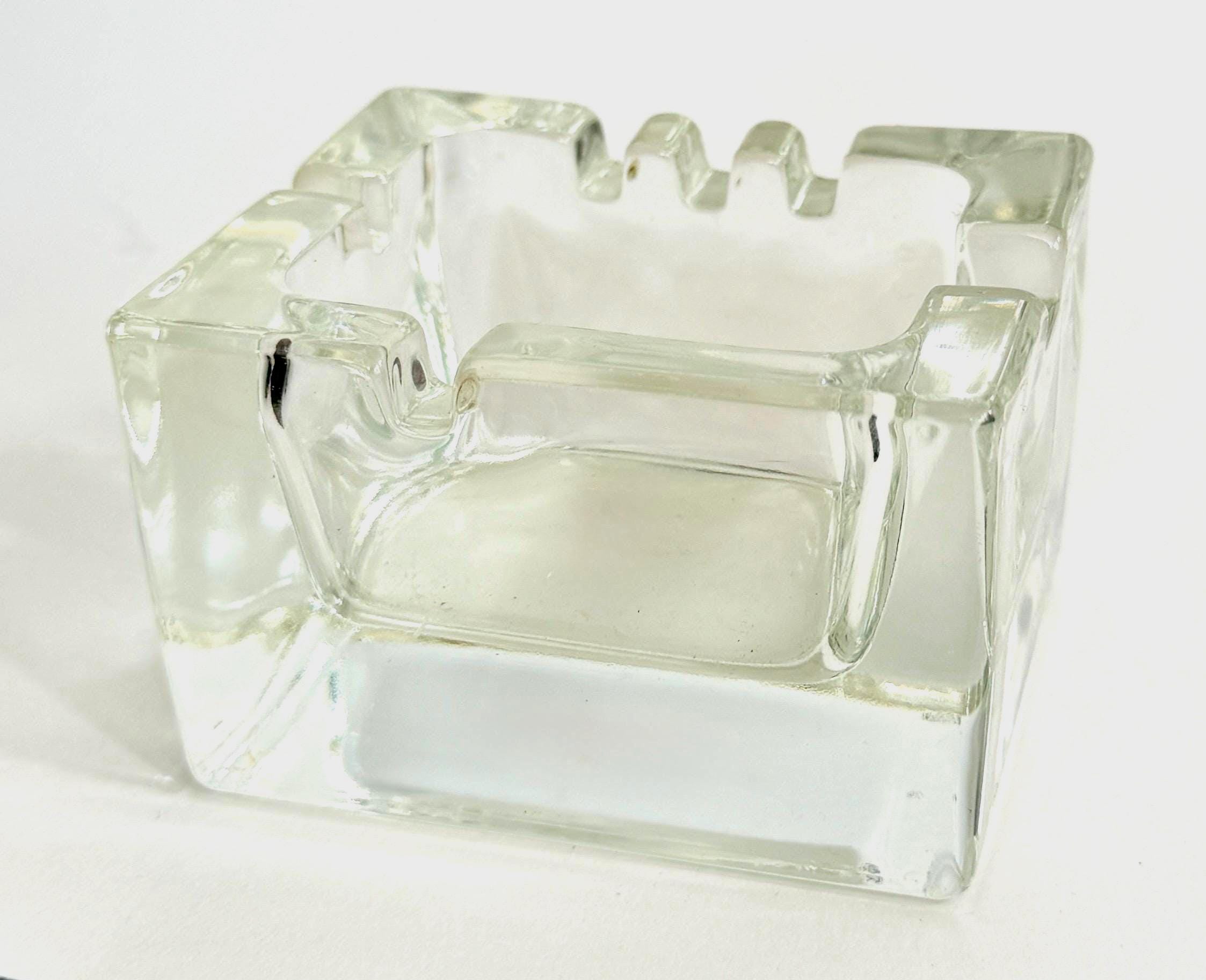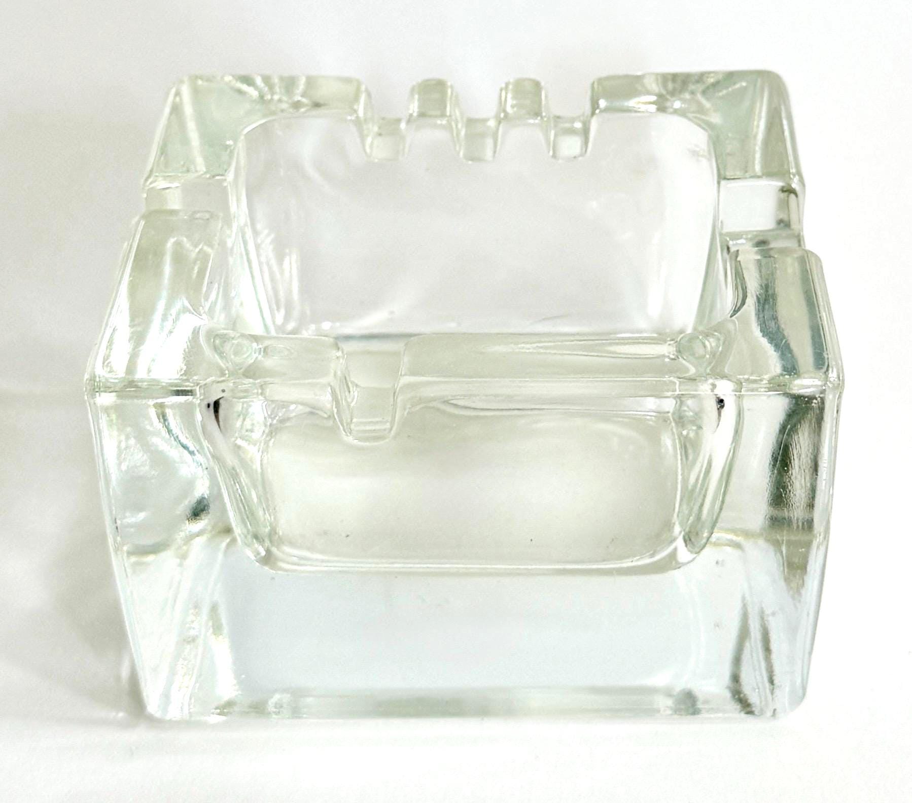 Mid Century Thick Clear Glass Rectangle Ashtray MCM Retro Atomic