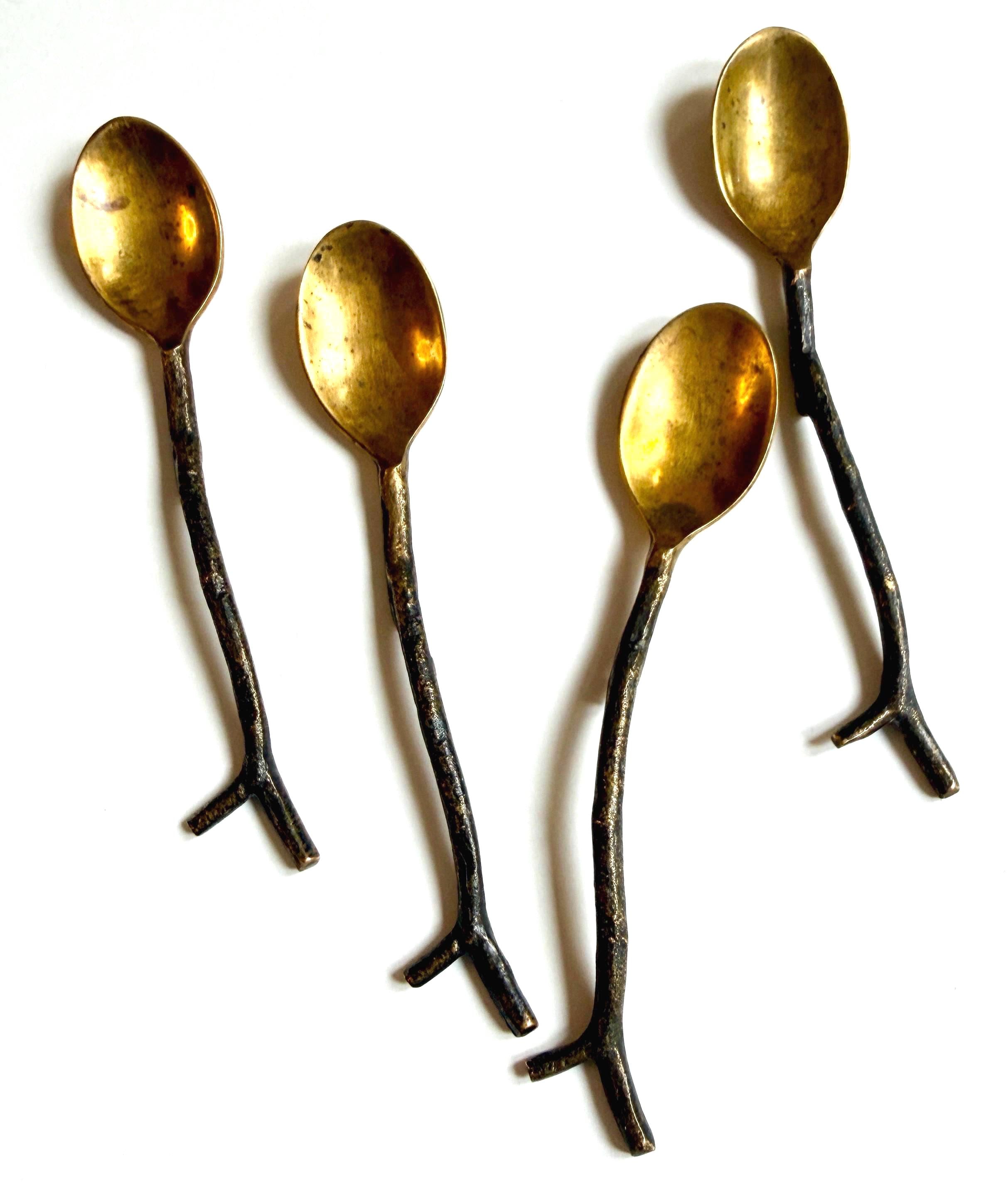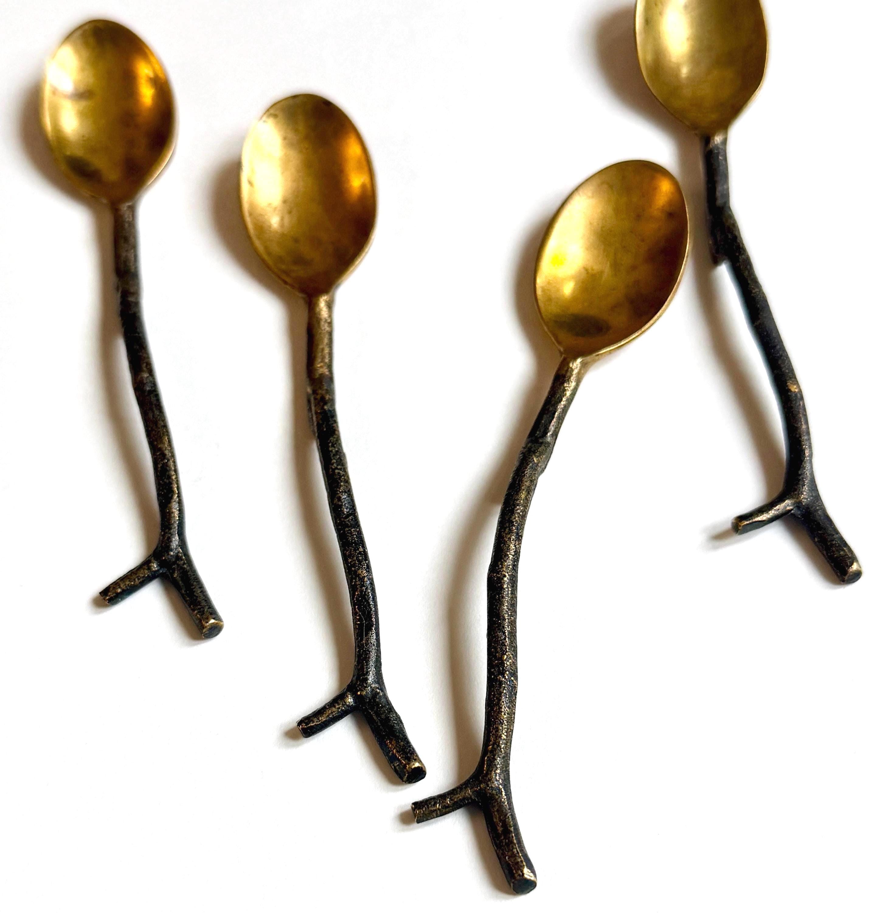 Brass Branch Twig Demitasse Spoon Set of 4 Pottery Barn Branches Spoons