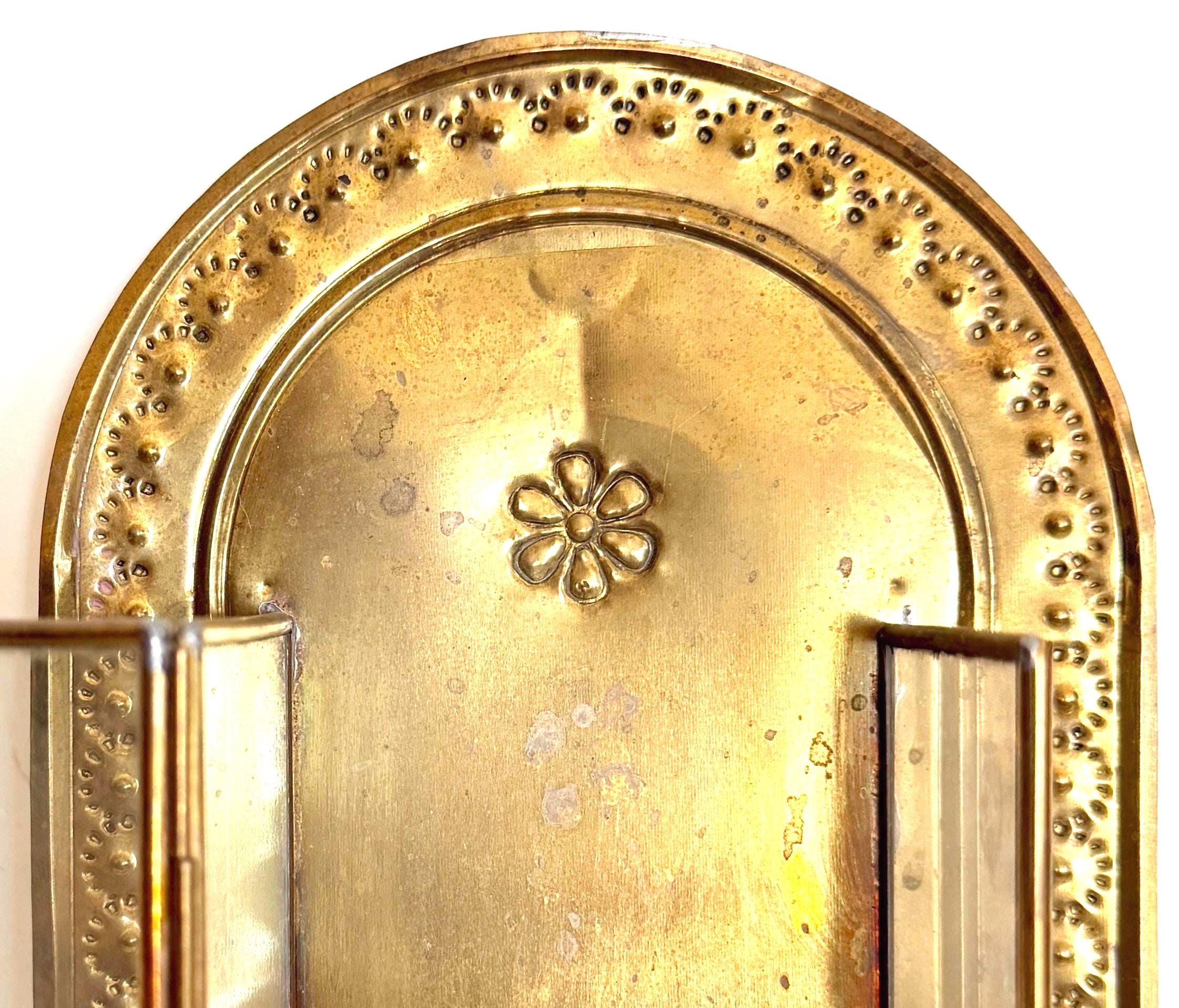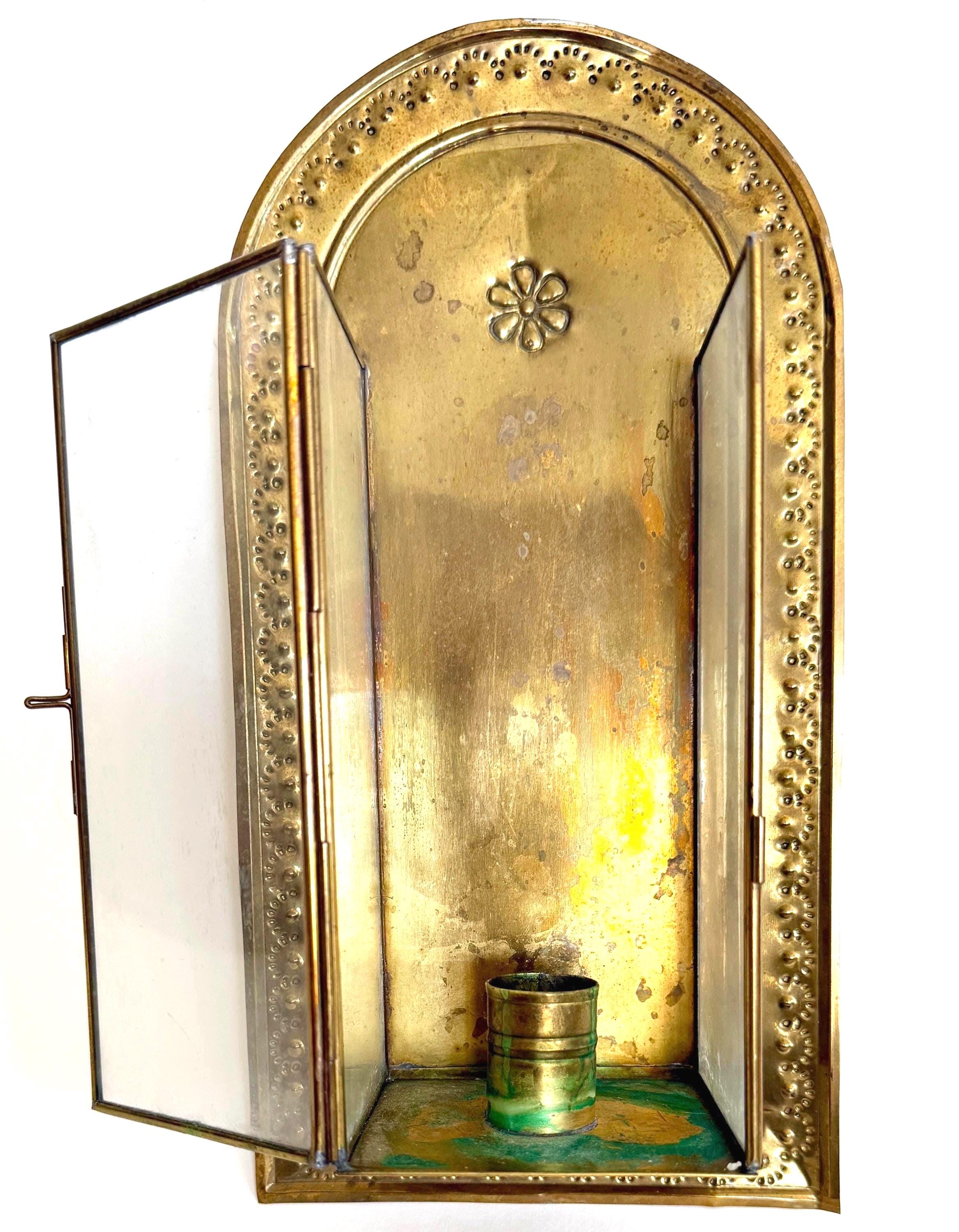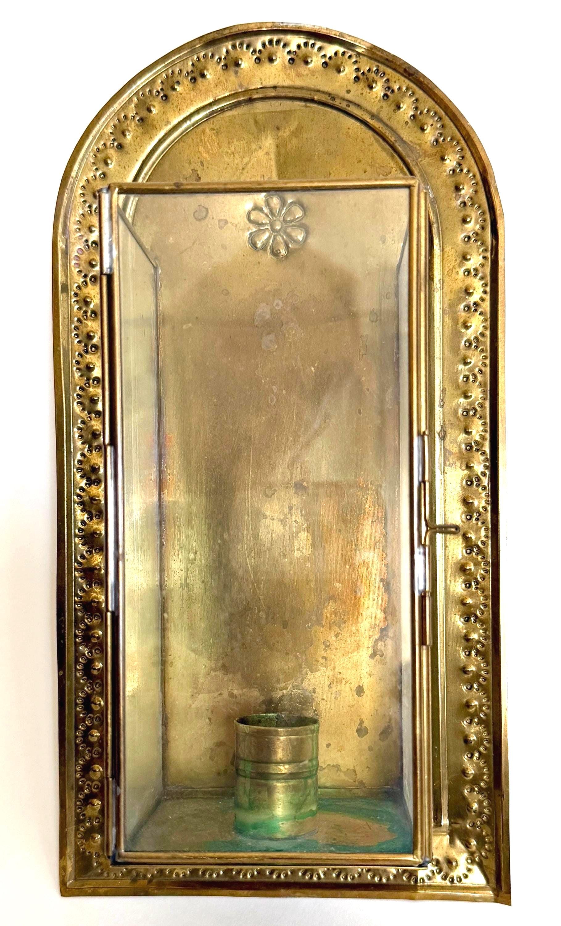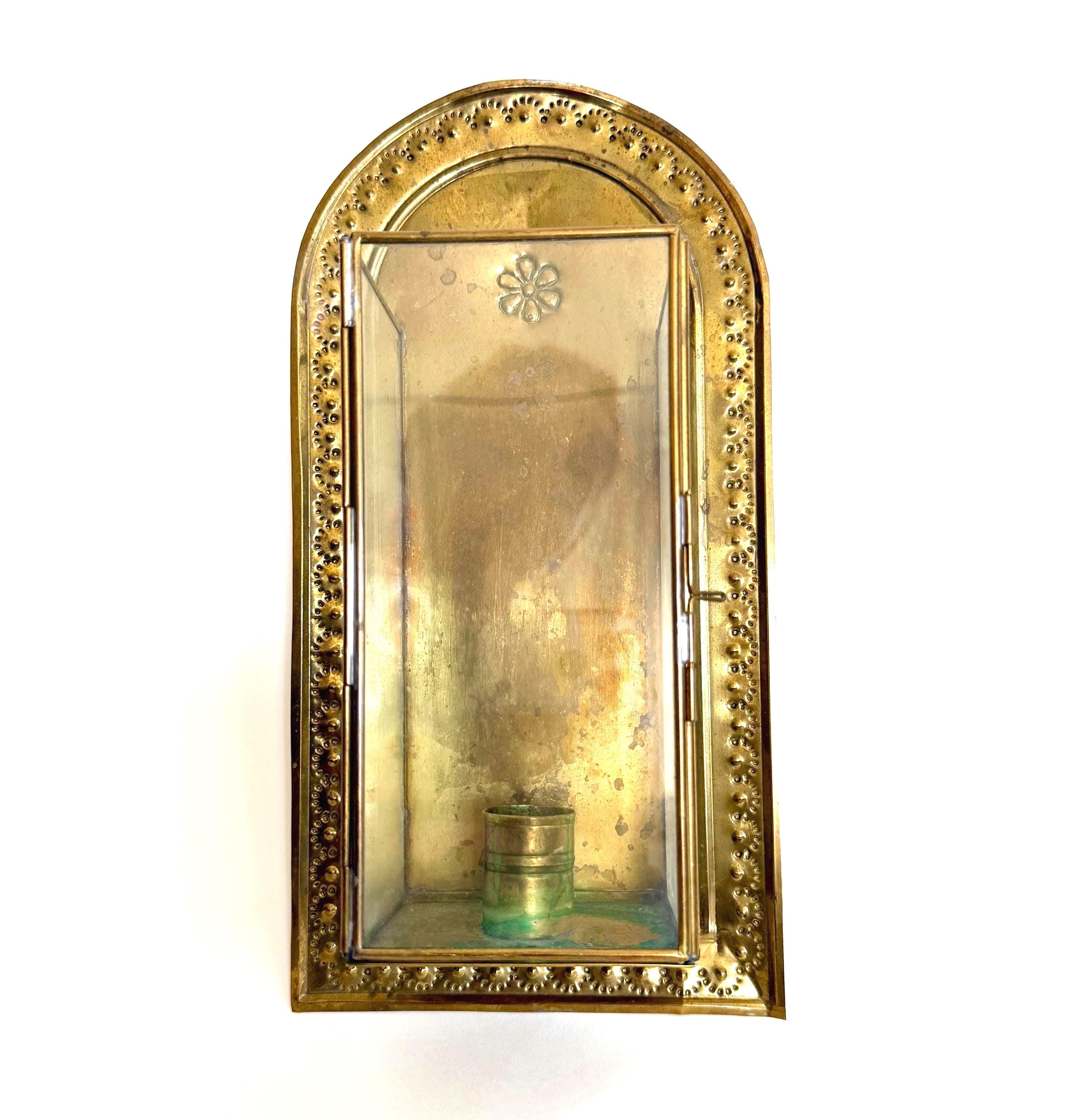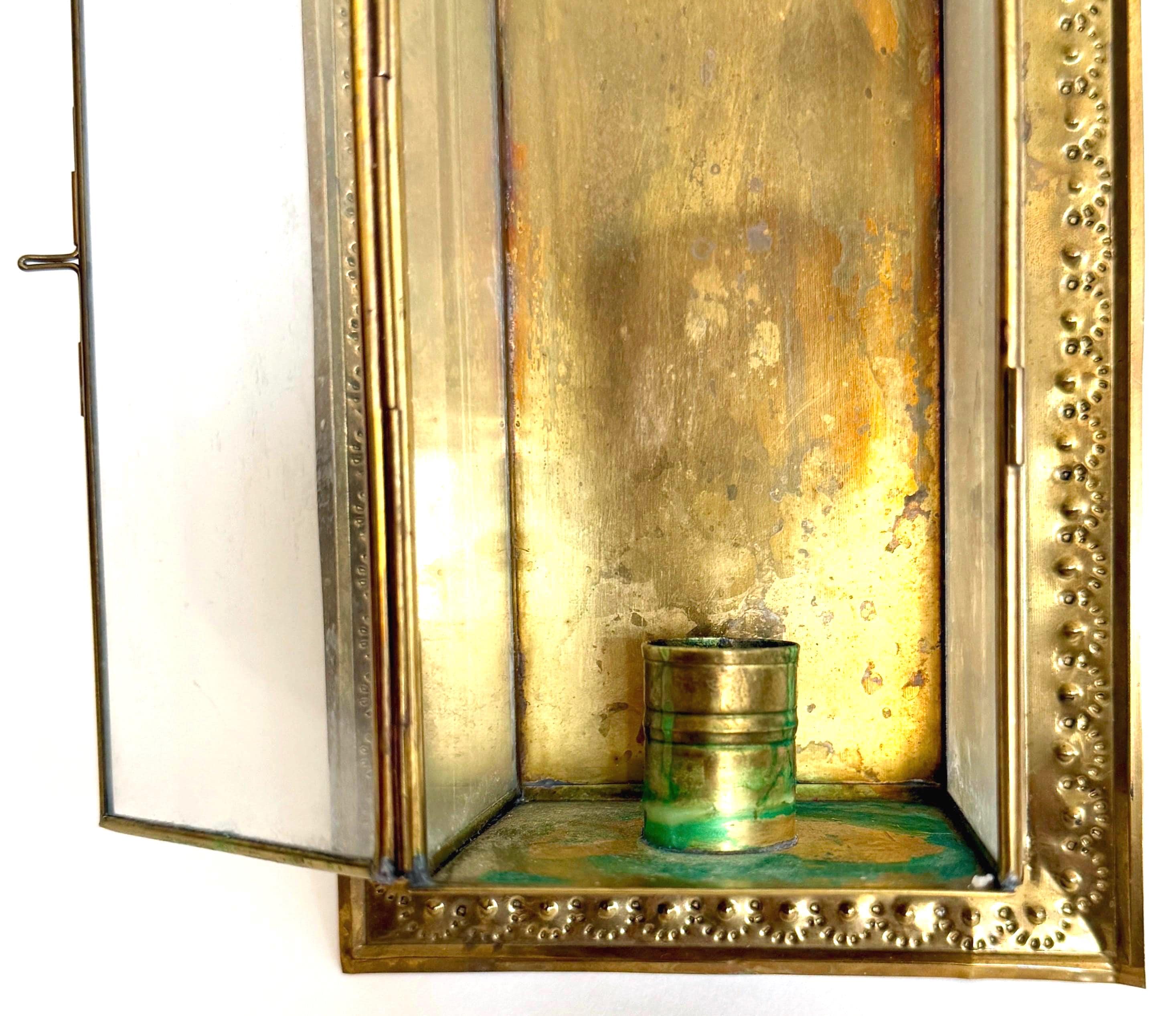 Vintage Punched Metal Candle Lantern Wall Mount Glass Nicho Southwest Style