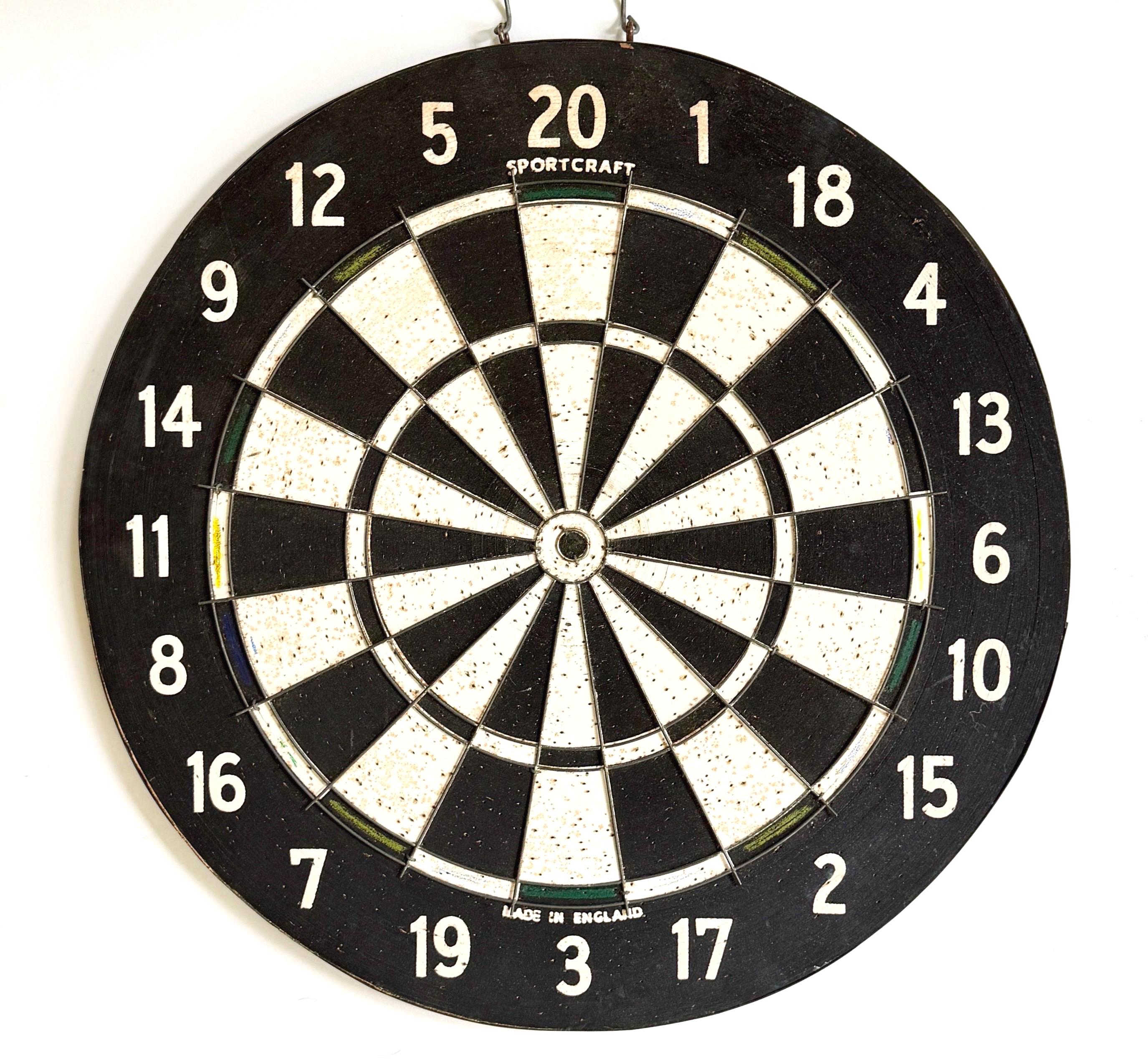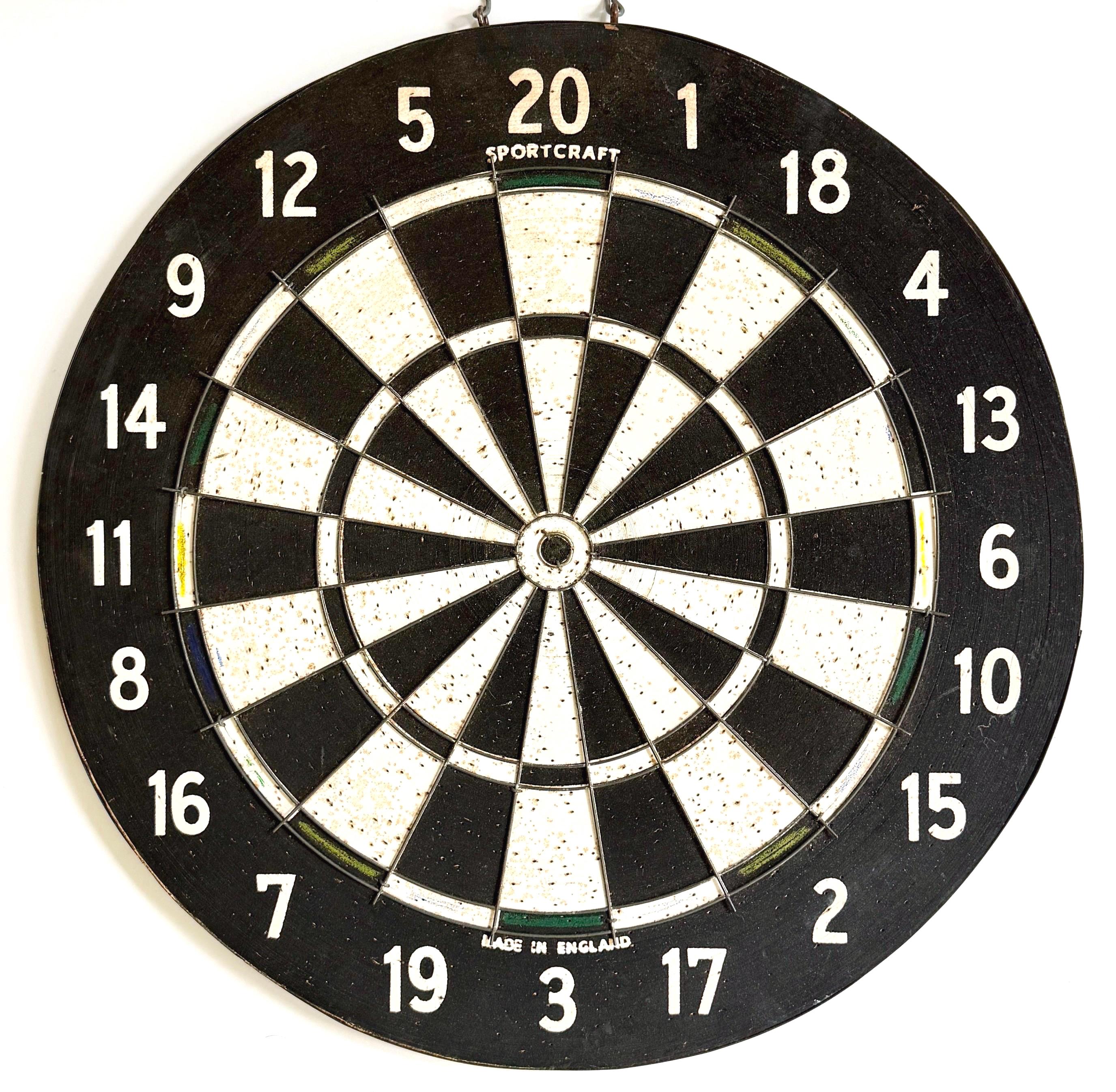 Vintage English Dart Board 40s 50s Made in England Double Sided 17.75"