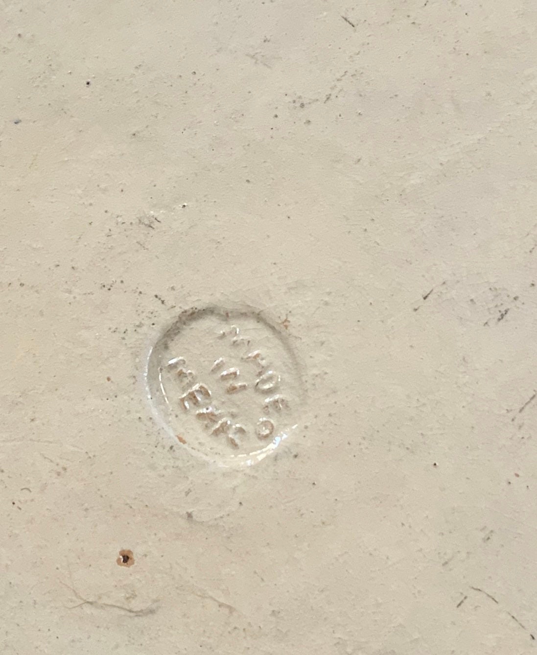 Fair vintage condition with a rustic patina, a small divot chip on the left hand side and minor chips in paint here and there - especially along the edges