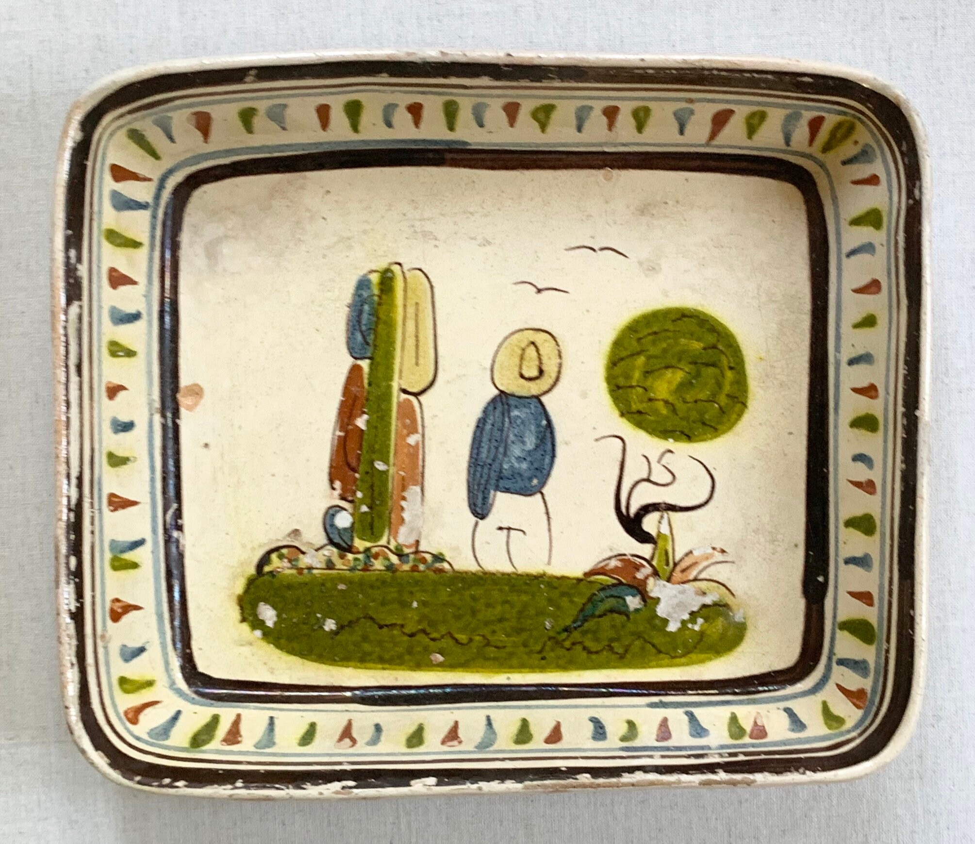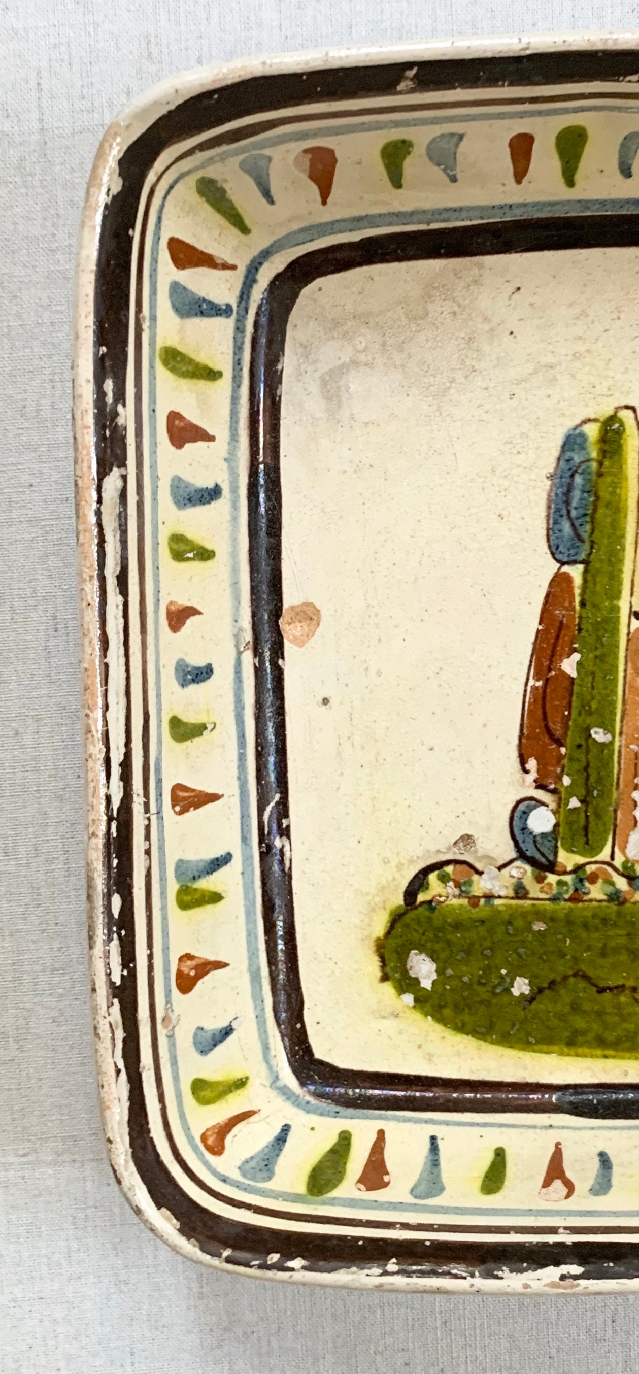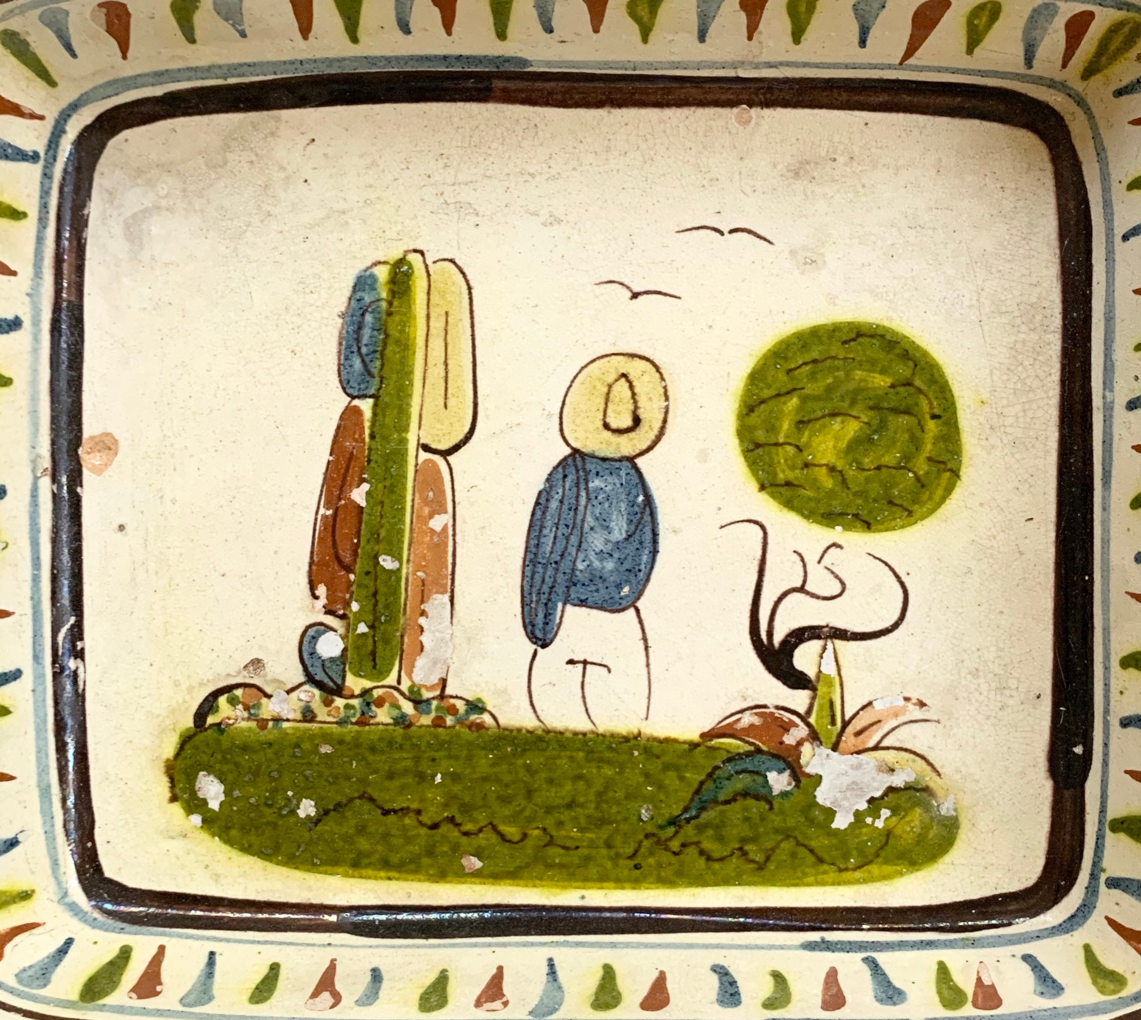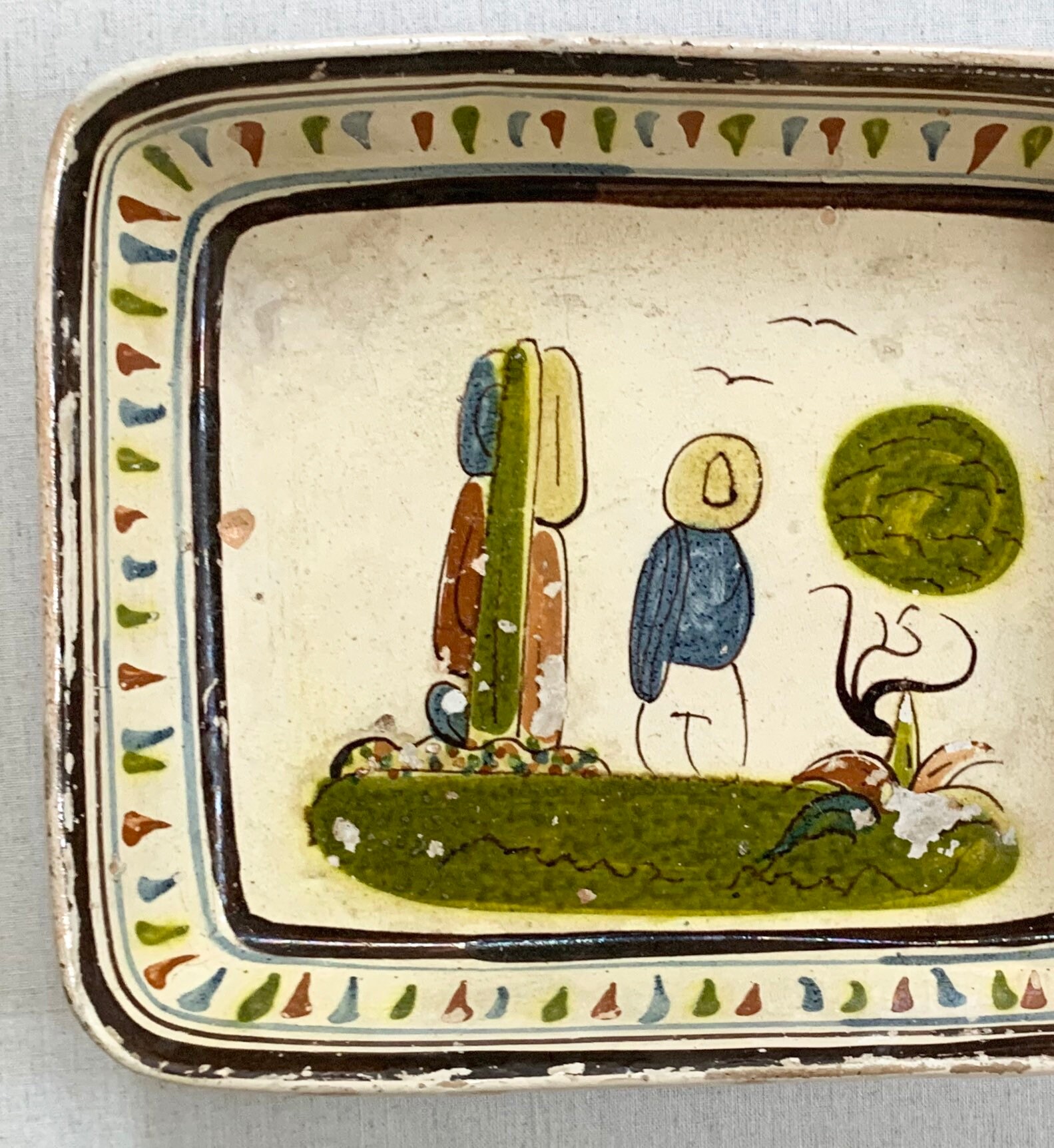 Mexican Ceramic Clay Bowl Platter Hand Painted Made in Mexico Folk Art Rustic Southwest Home Dining Decor