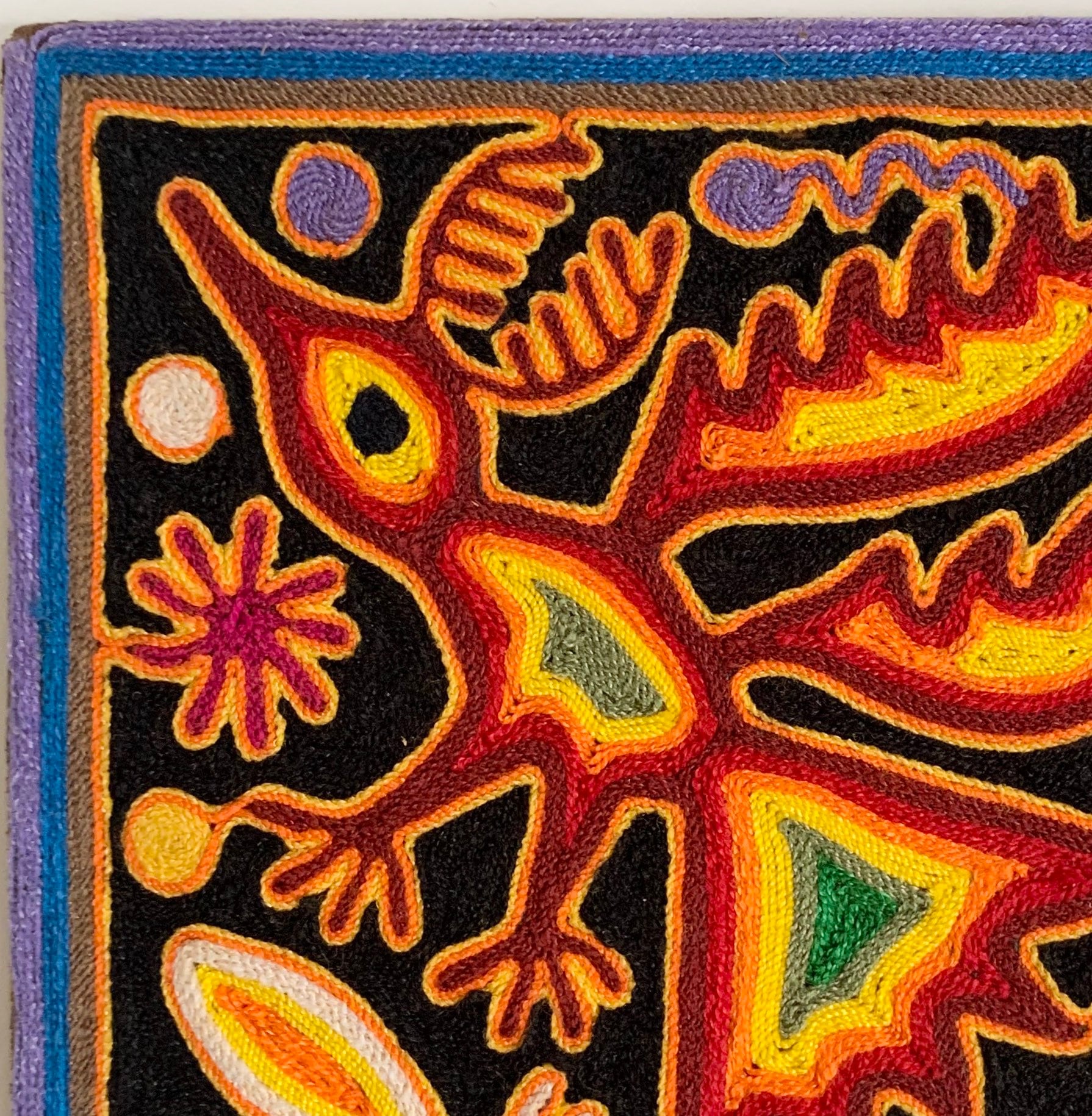 Mexican Huichol Yarn Art Painting Nierika Wall Hanging Colorful Vintage Mexican Folk Art Wall Art Wall Decor Plants Bird Animal Small Square