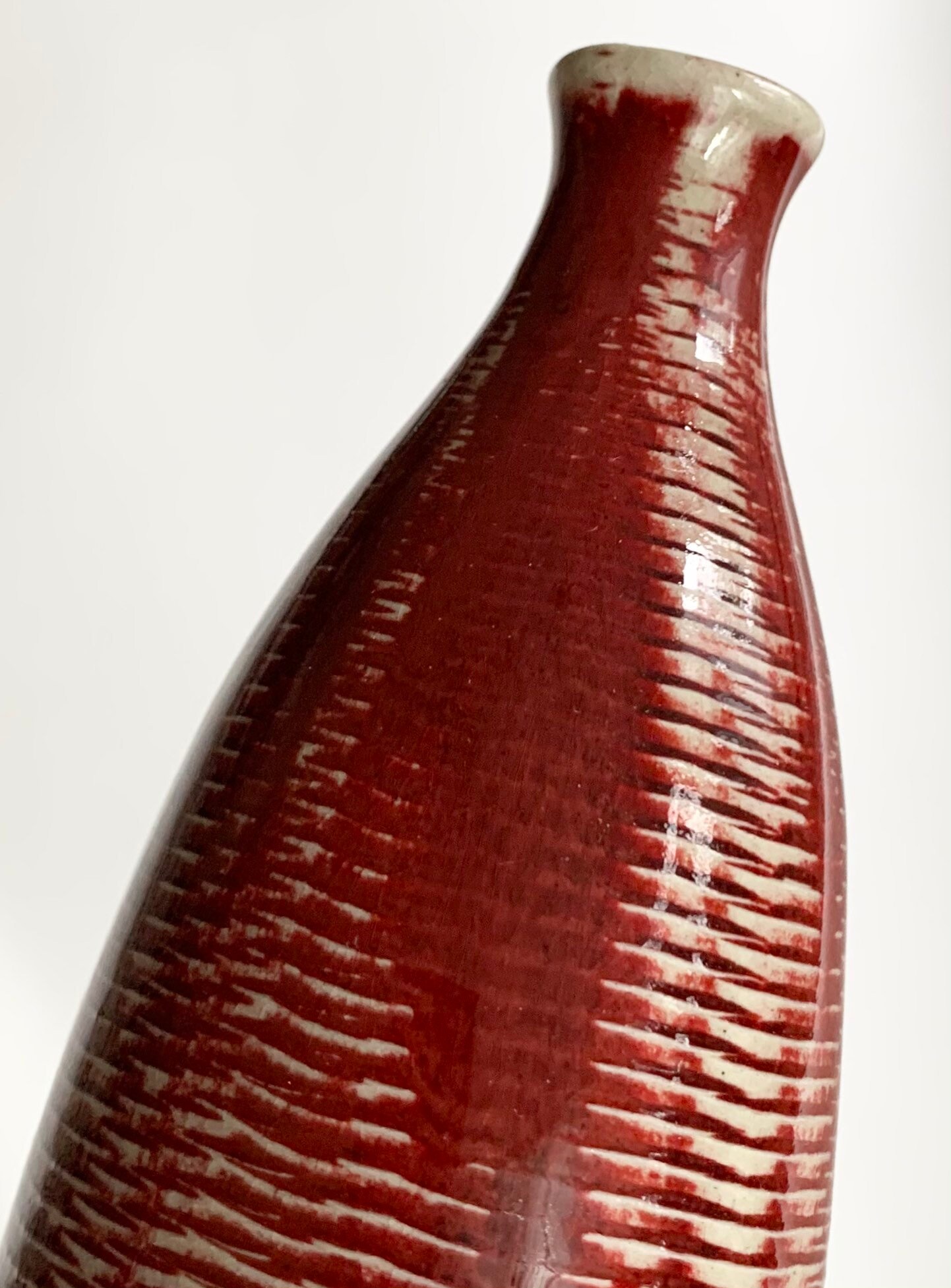 Red Pottery Bud Vase Pot Vintage Handmade Red Gray Beige Glazed Studio Pottery Small Size Farmhouse Holiday Decor