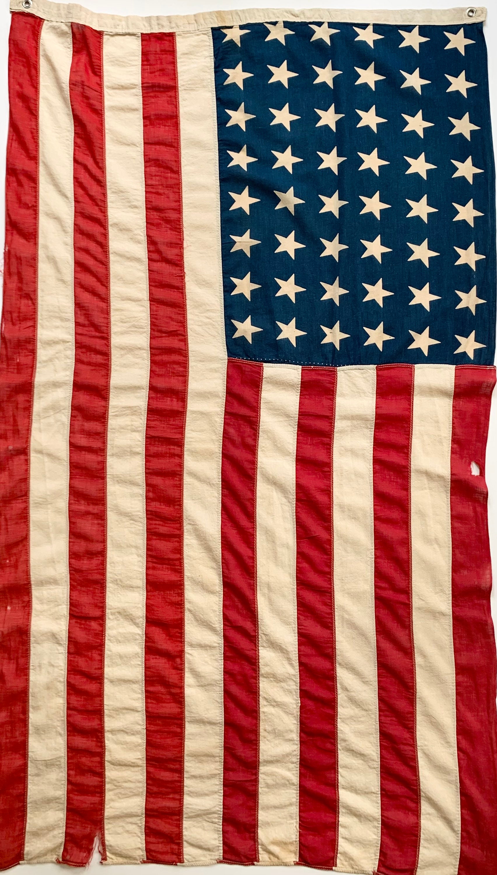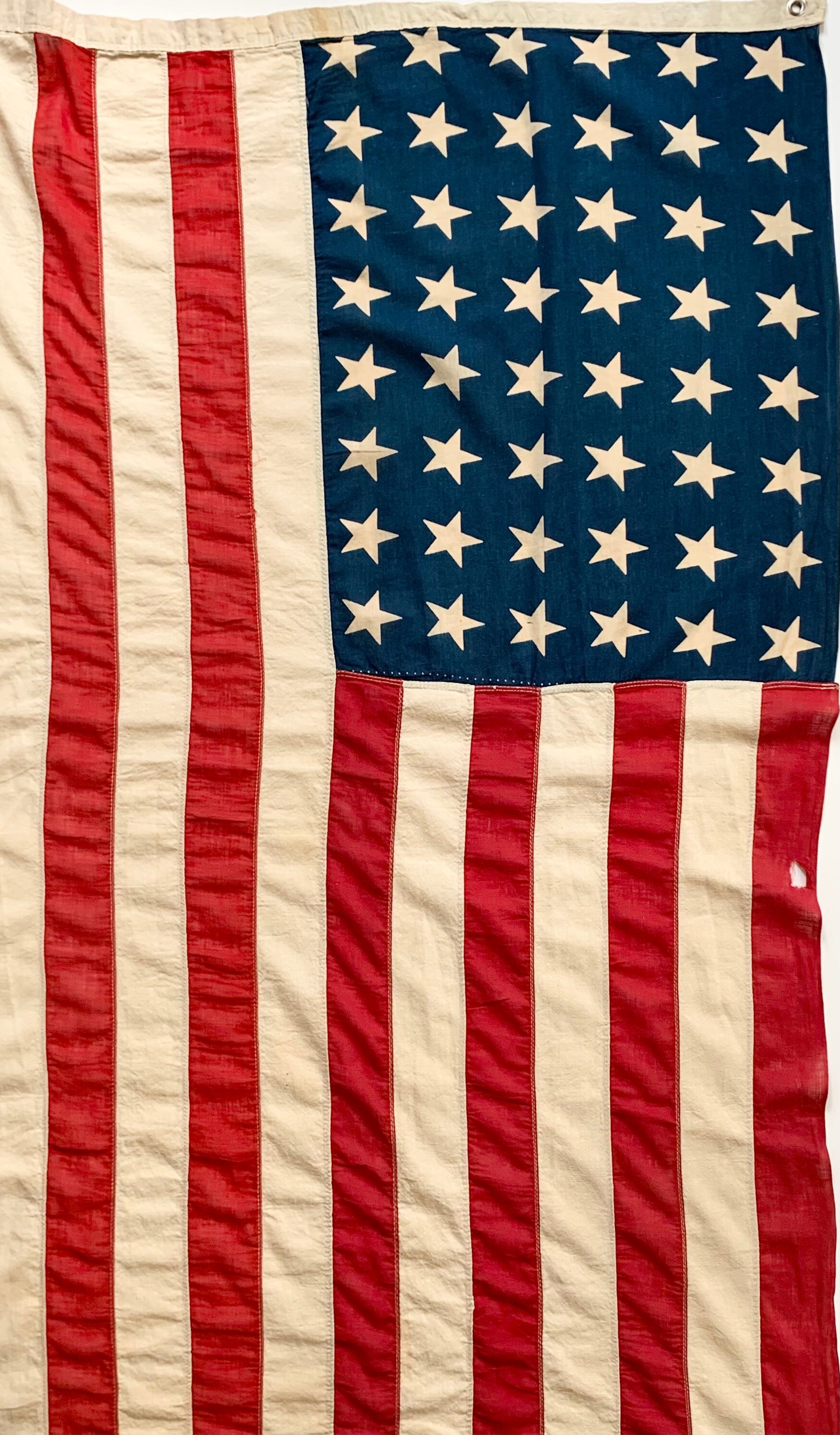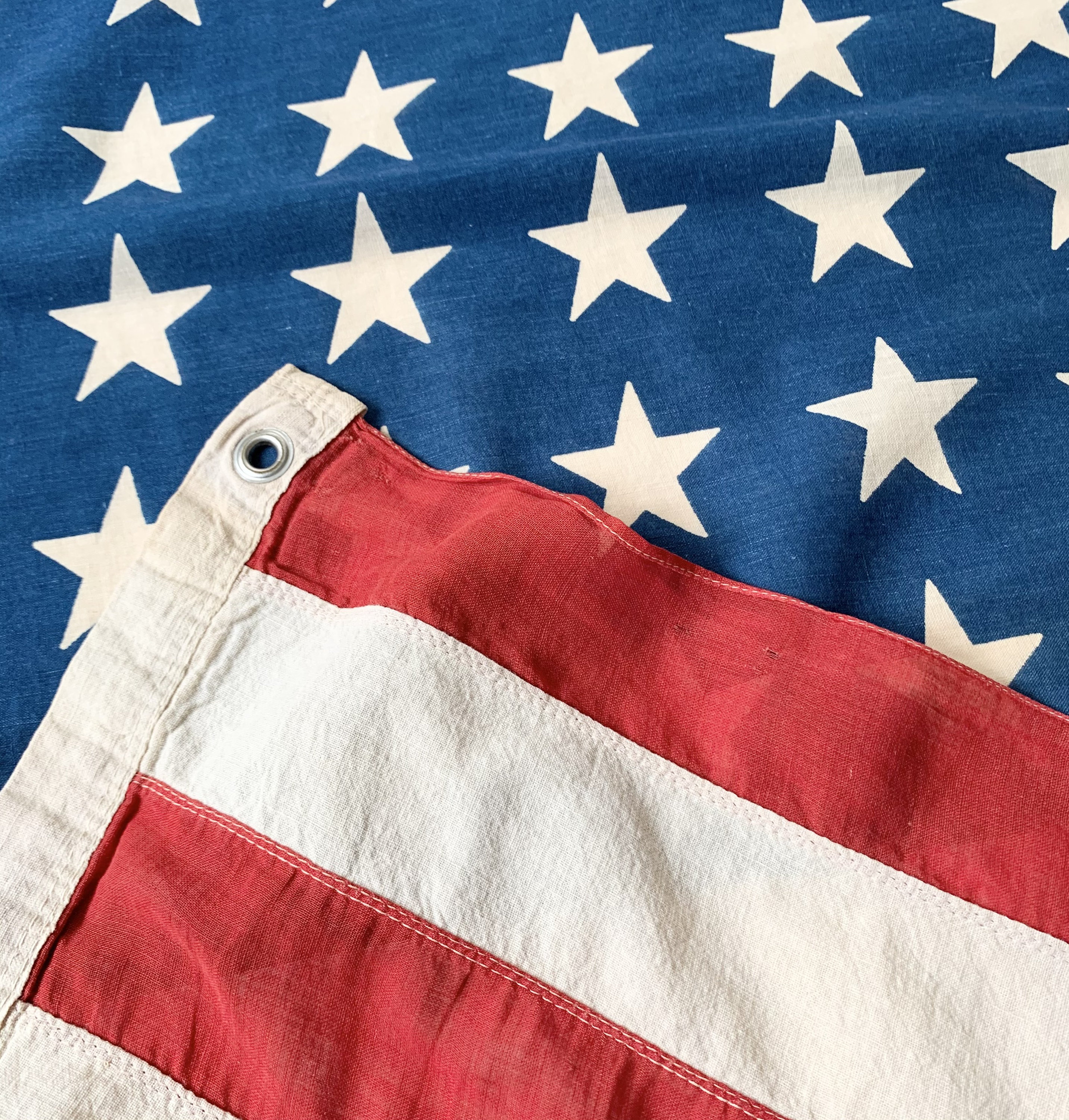 Vintage 50's 48 star cotton American flag with printed stars and single stitched panels