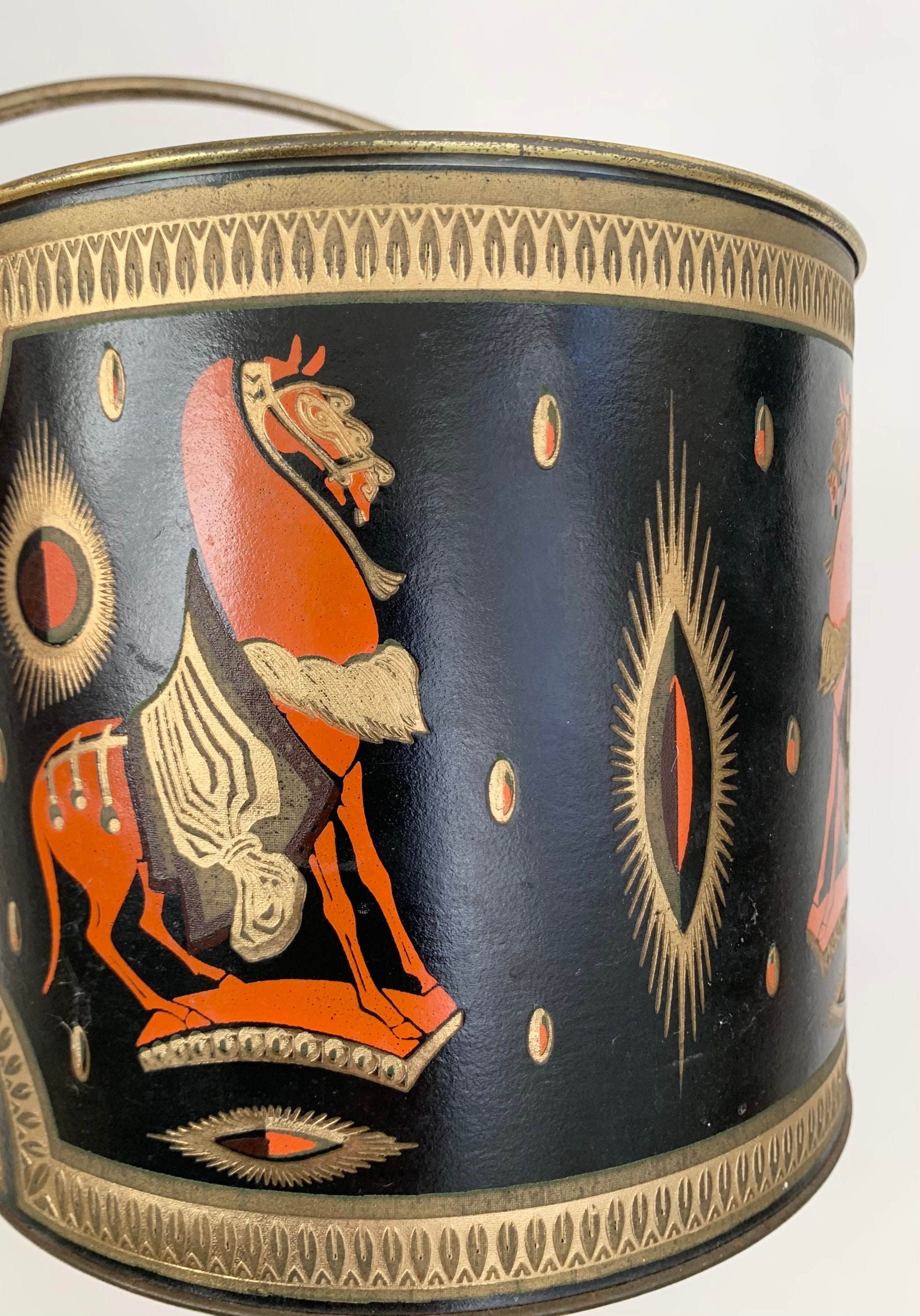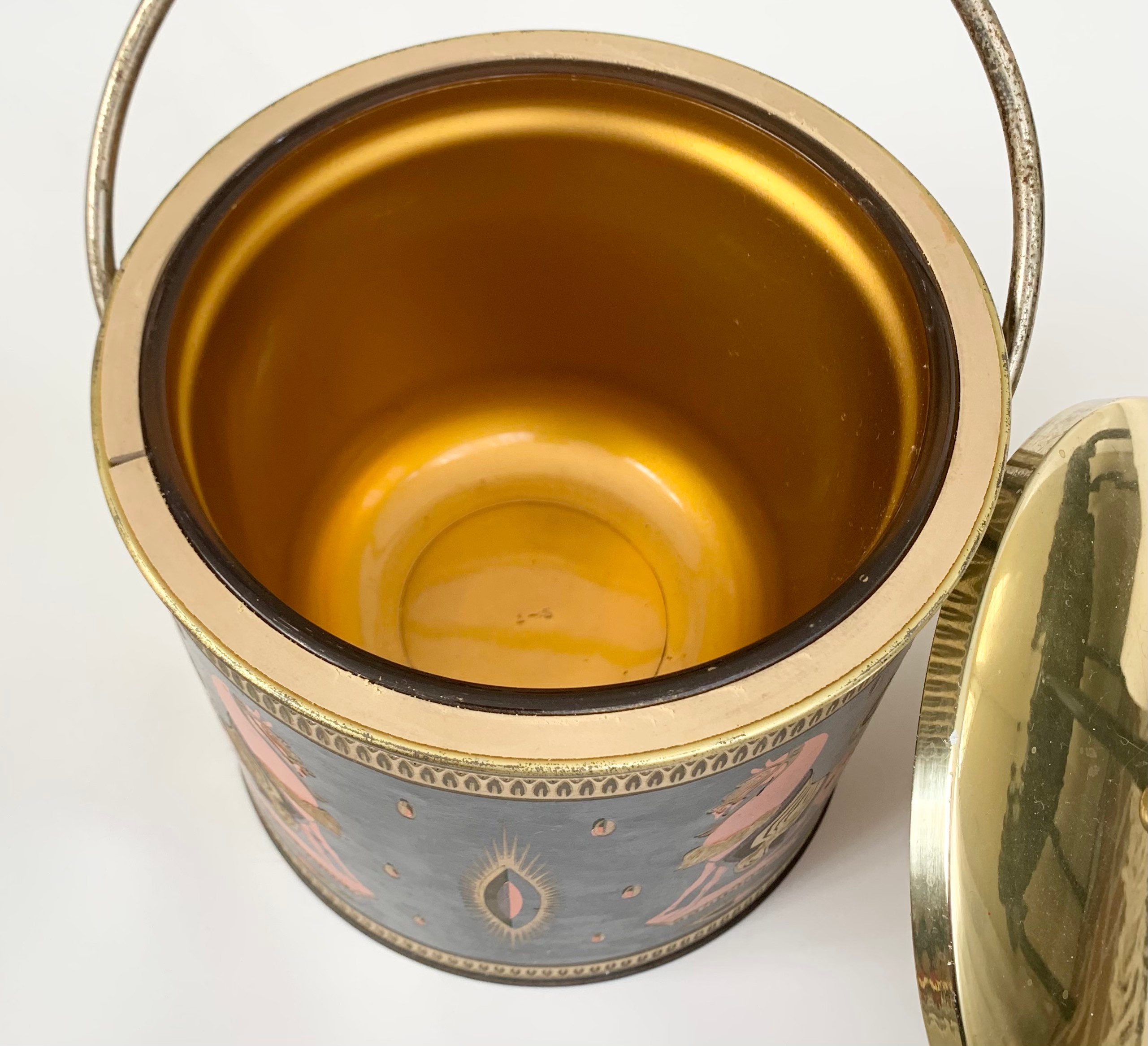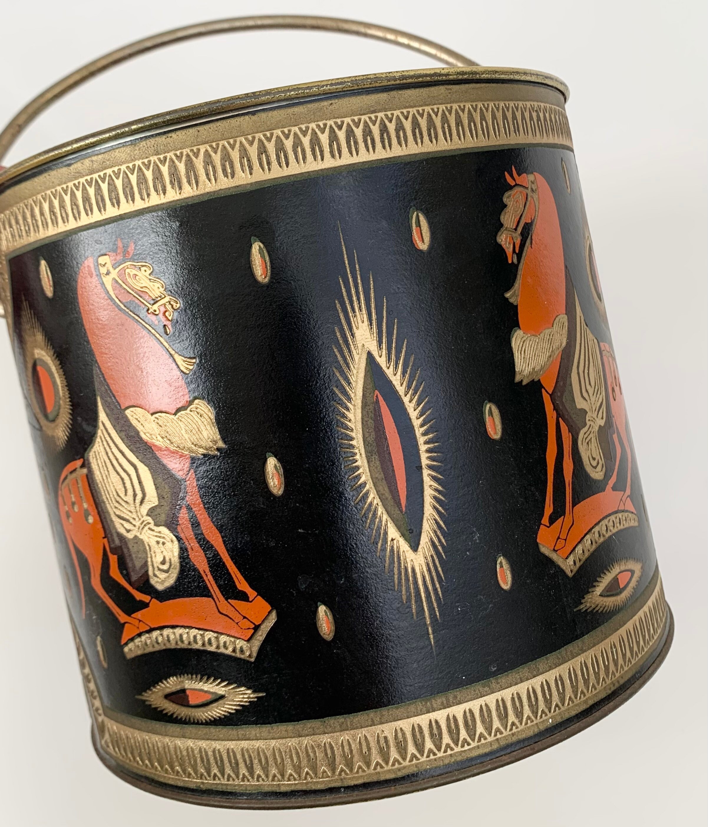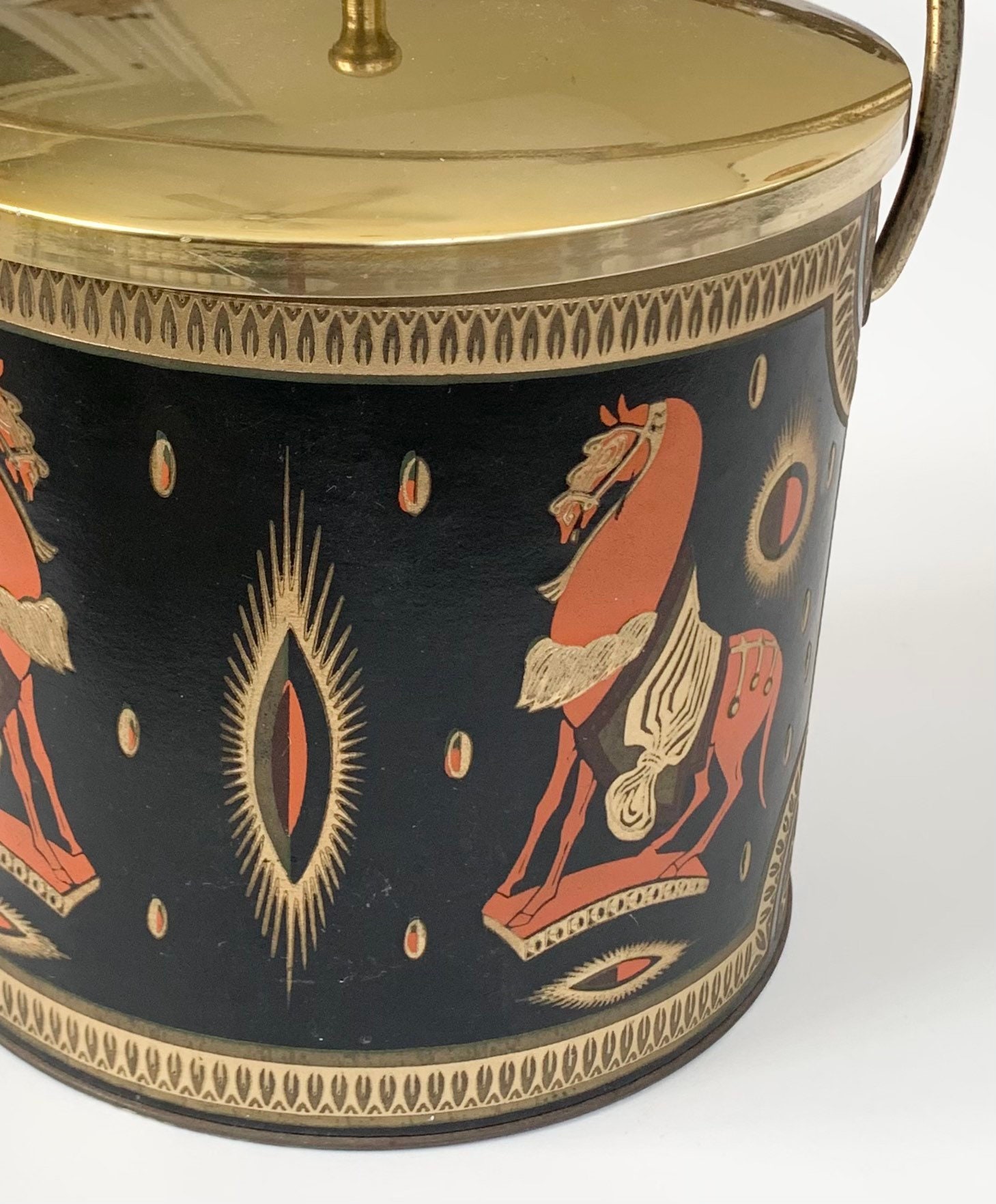 Fred Press Ice Bucket Mid Century Vintage 50s 60s MCM Barware Ice Cooler with Lid Gold Tone Metal Chinese Trojan Horse Collectible Designer