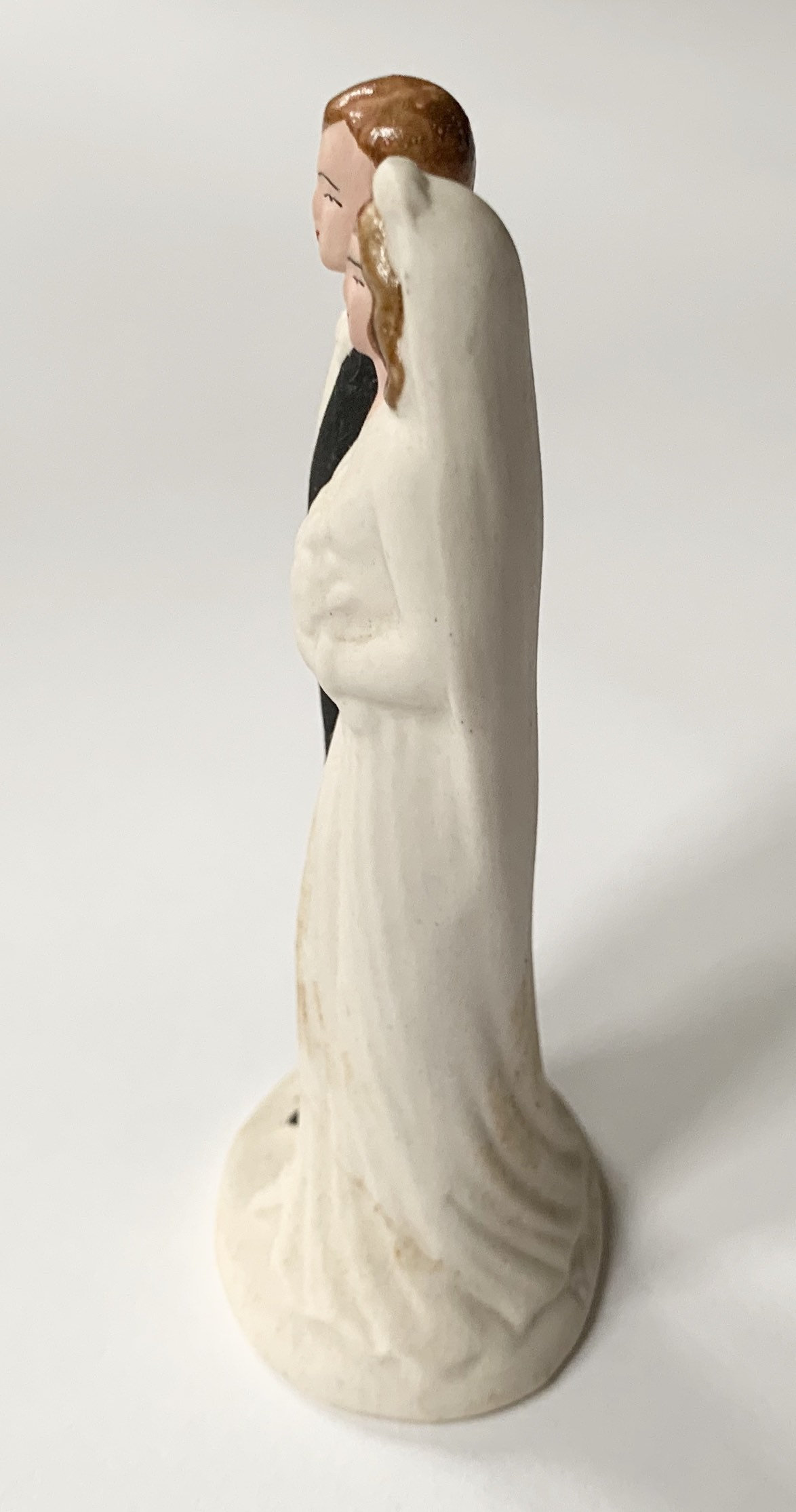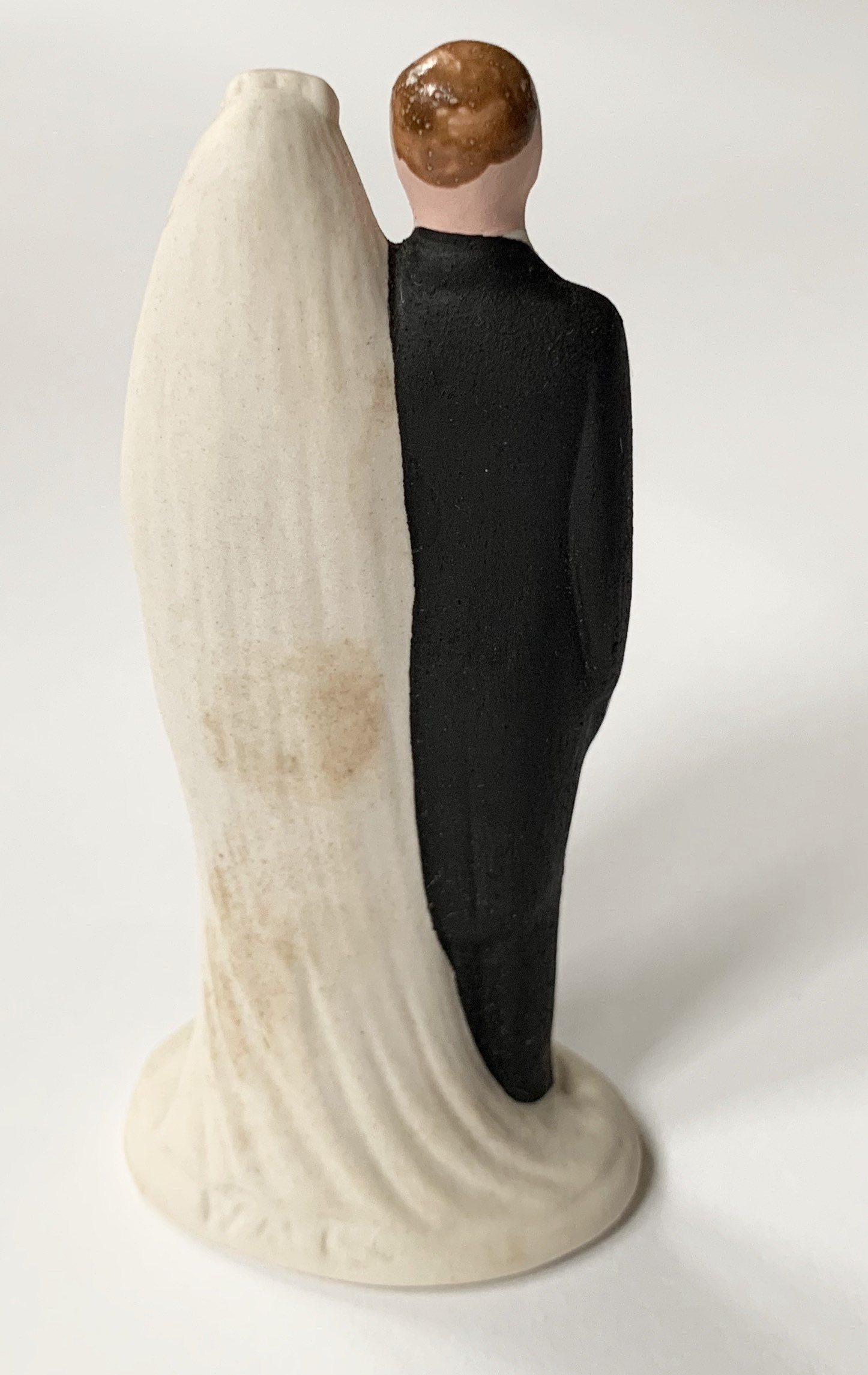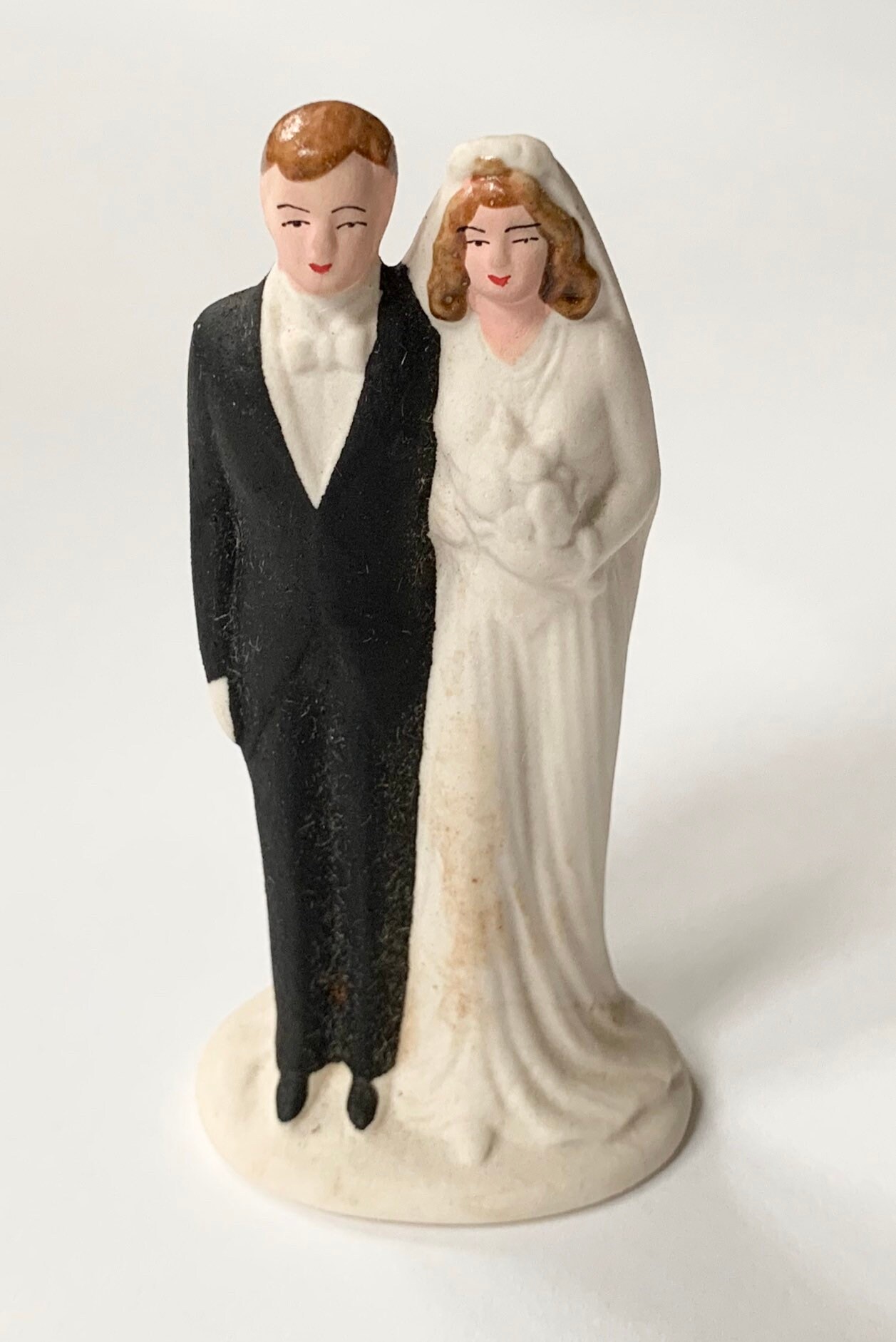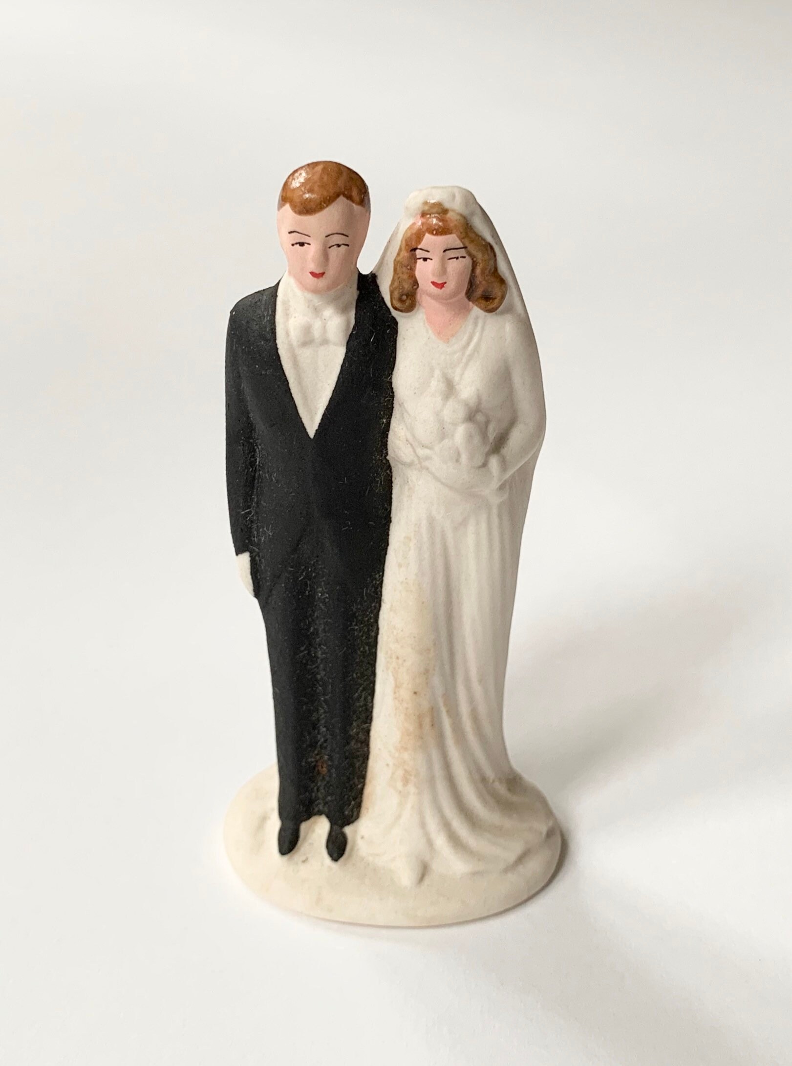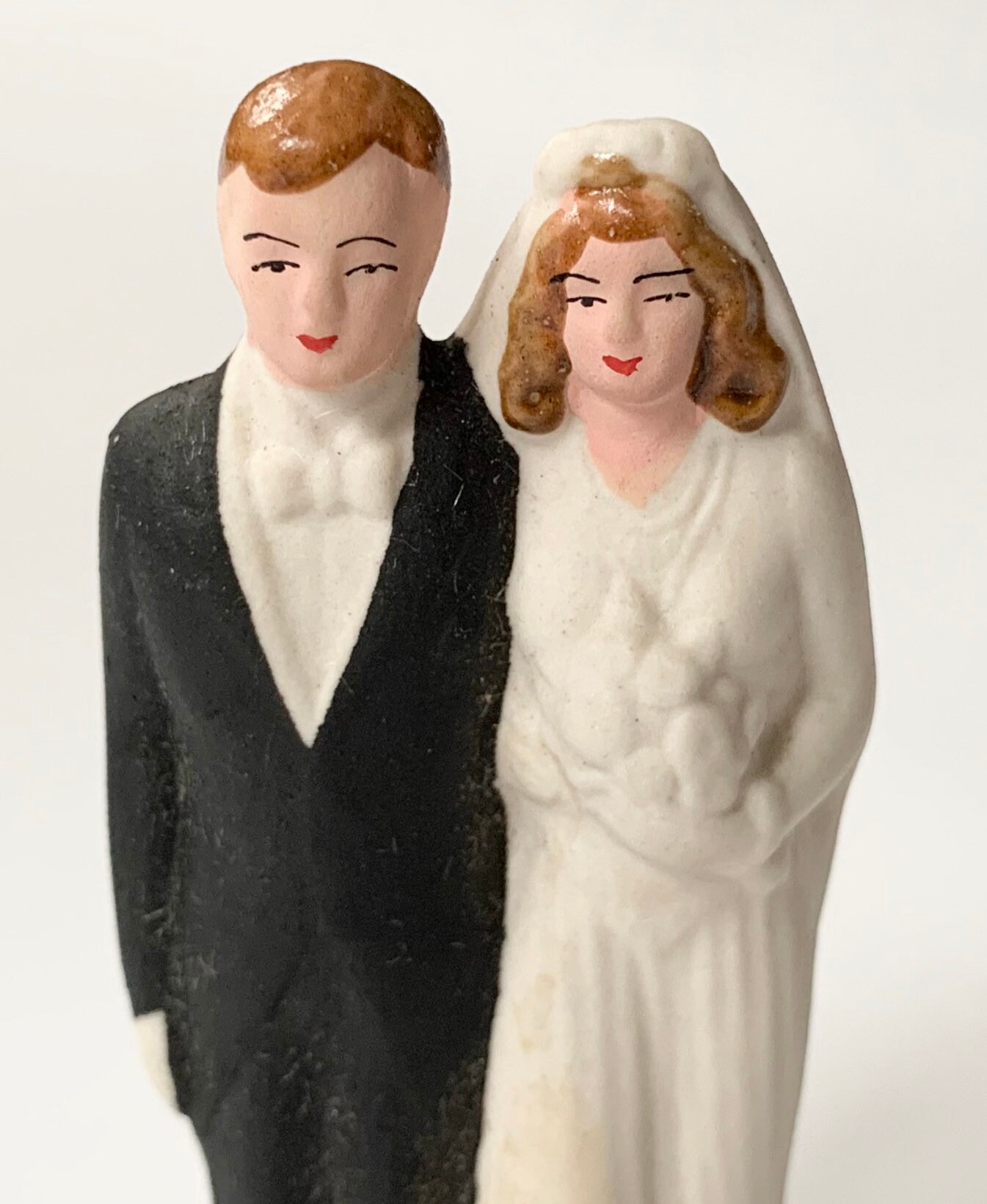 Whimsical vintage hand painted ceramic porcelain bride and groom wedding cake topper