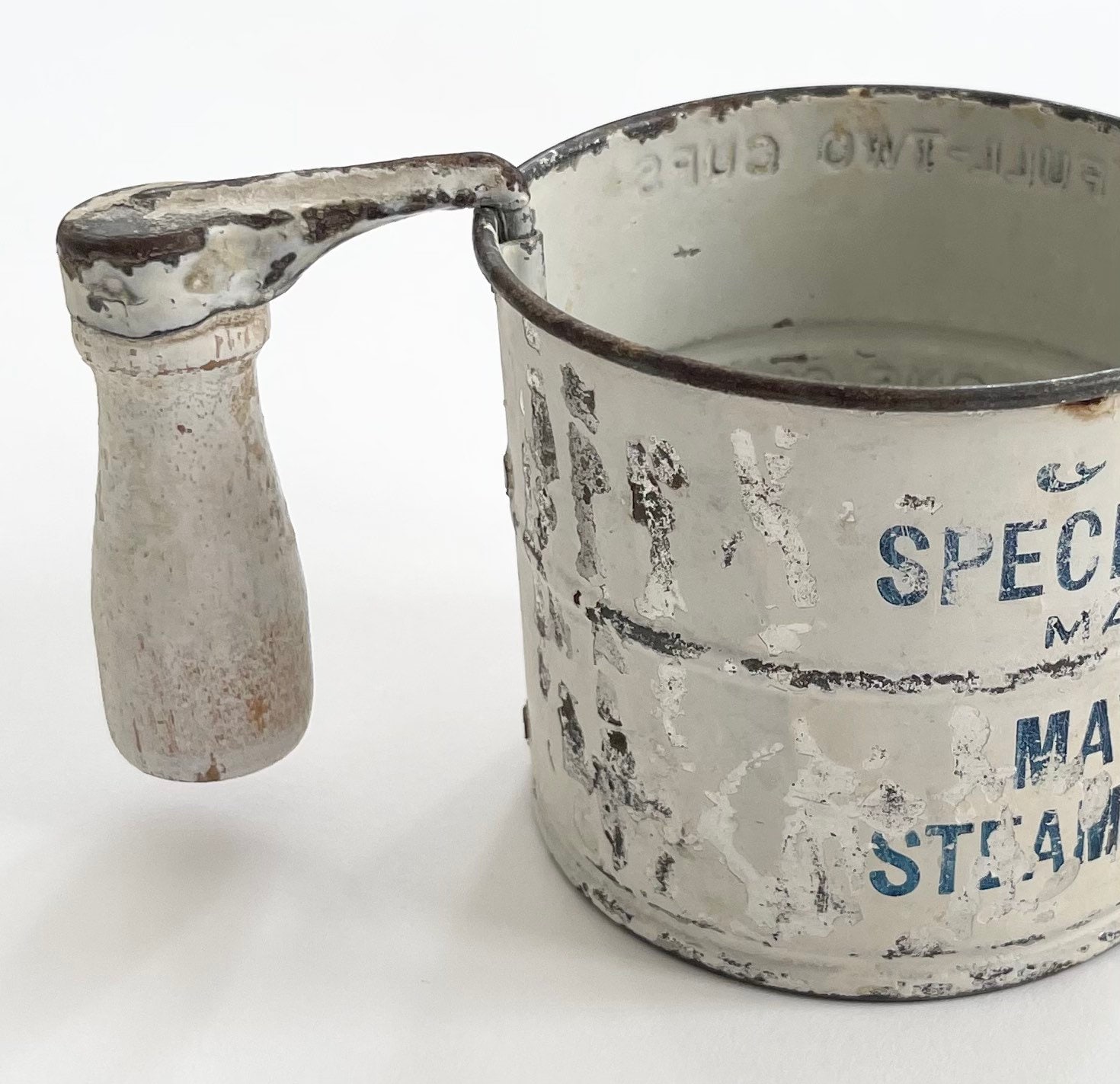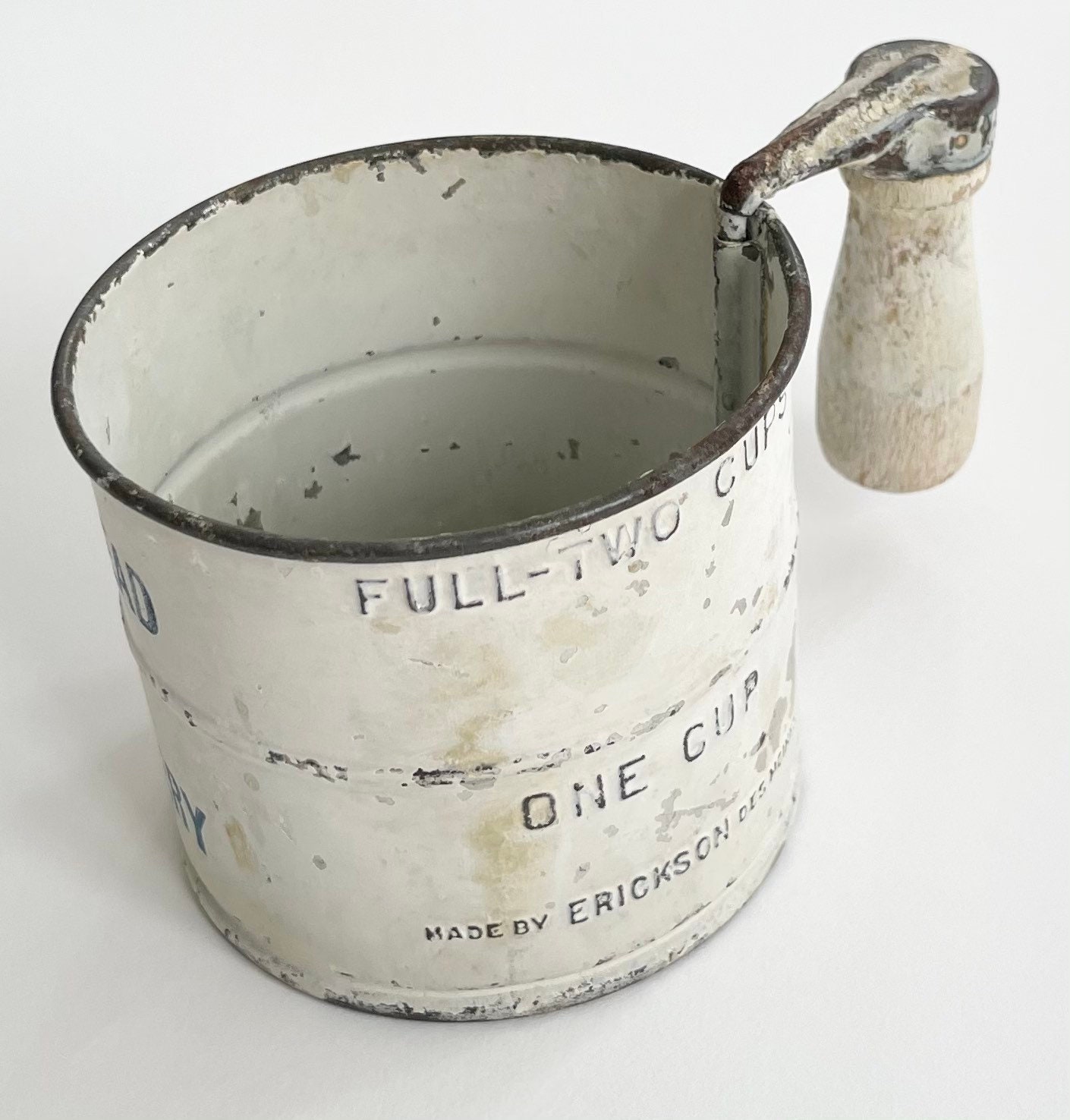 Rustic Metal Flour Sifter Vintage Erickson Des Moines Two Cup Hand Wood Handle Metal Mesh Farmhouse Shabby Chic Kitchen Utensil