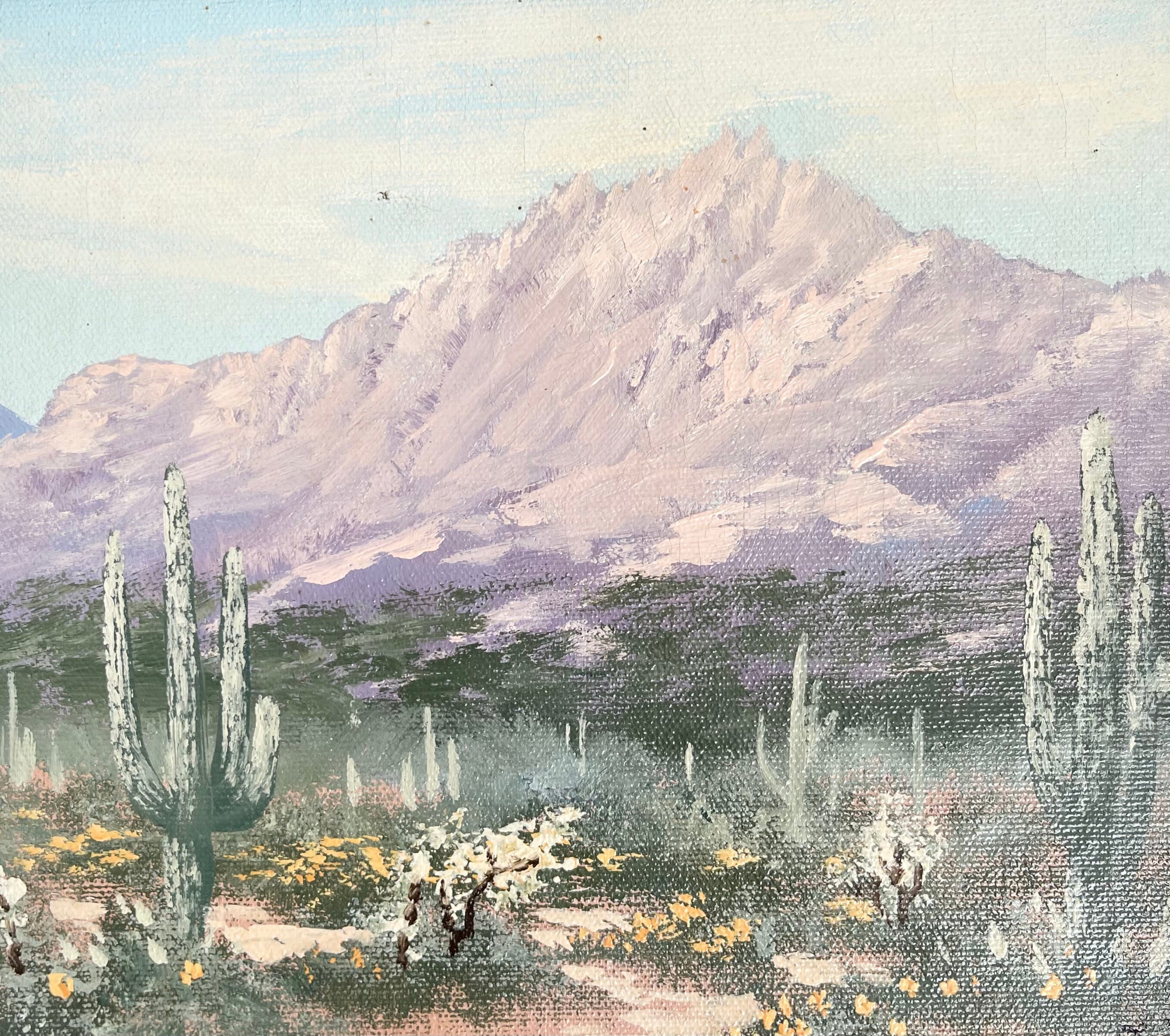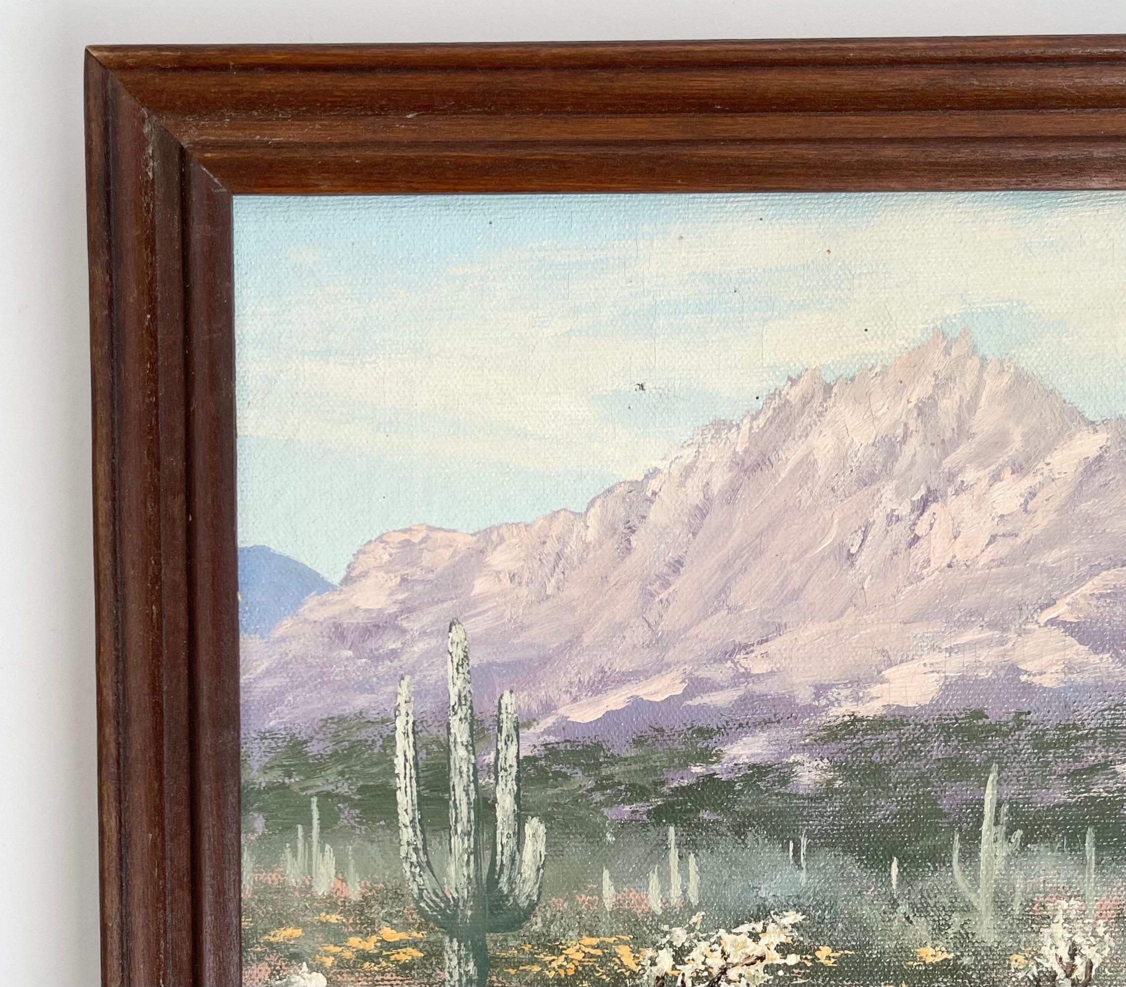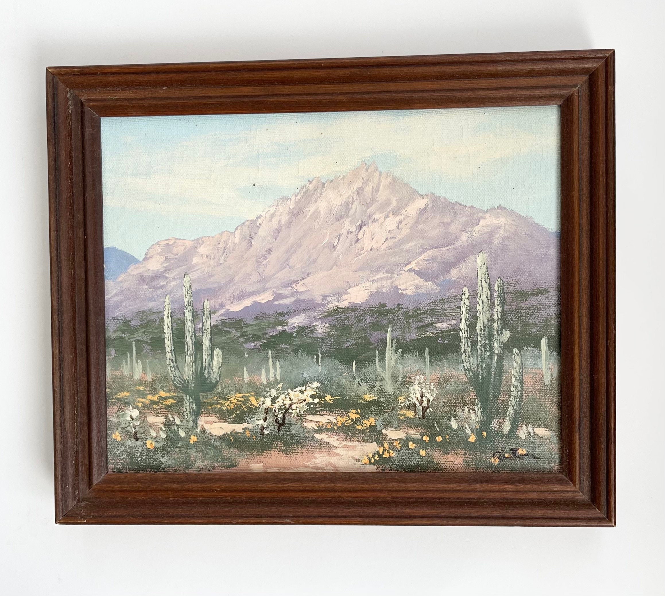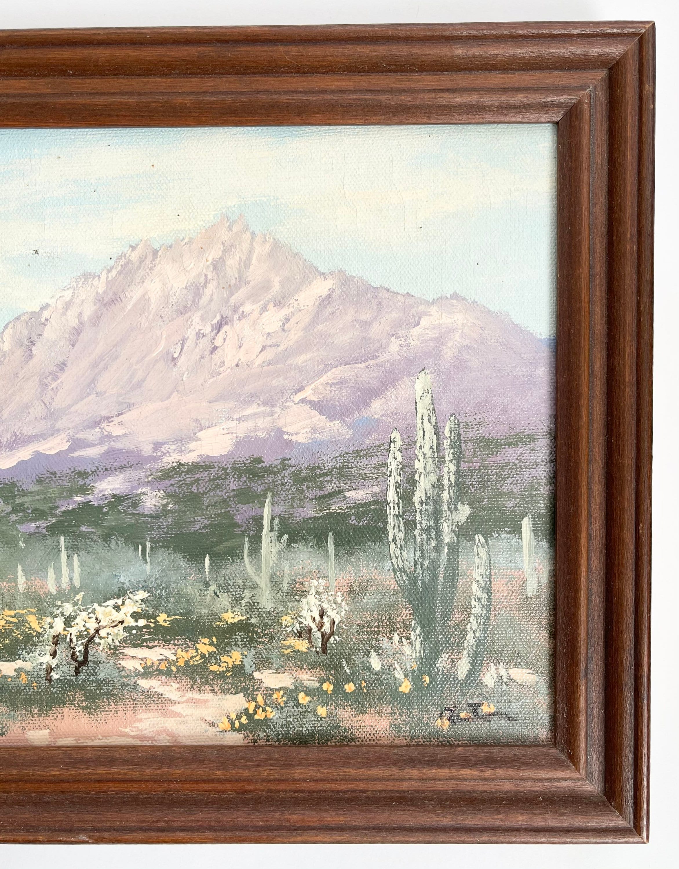 Desert Landscape Oil Painting Original Art Signed Southwest American Southwest Cactus Mountains Arizona New Mexico Small Size Framed