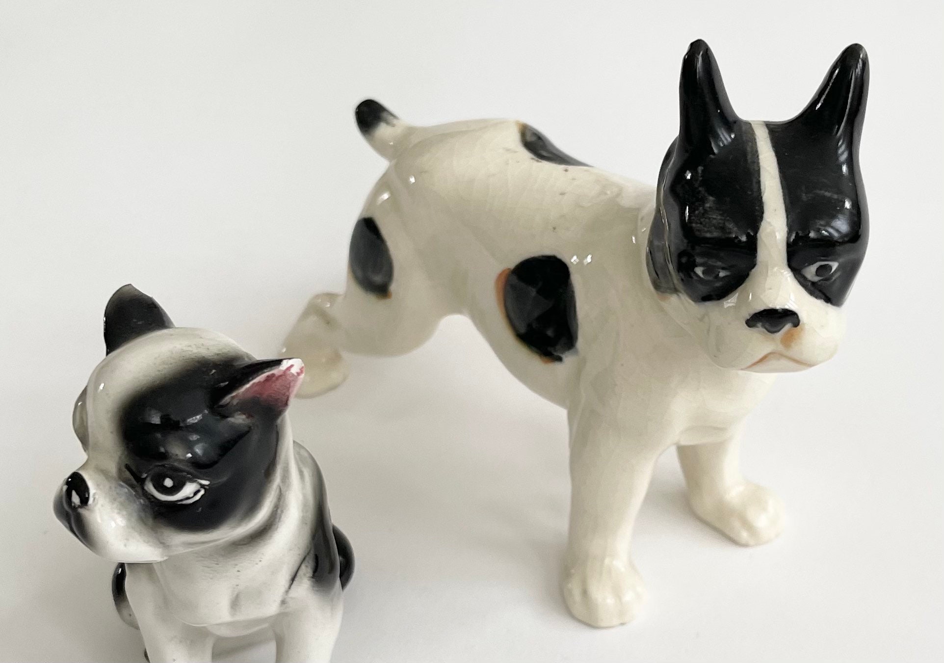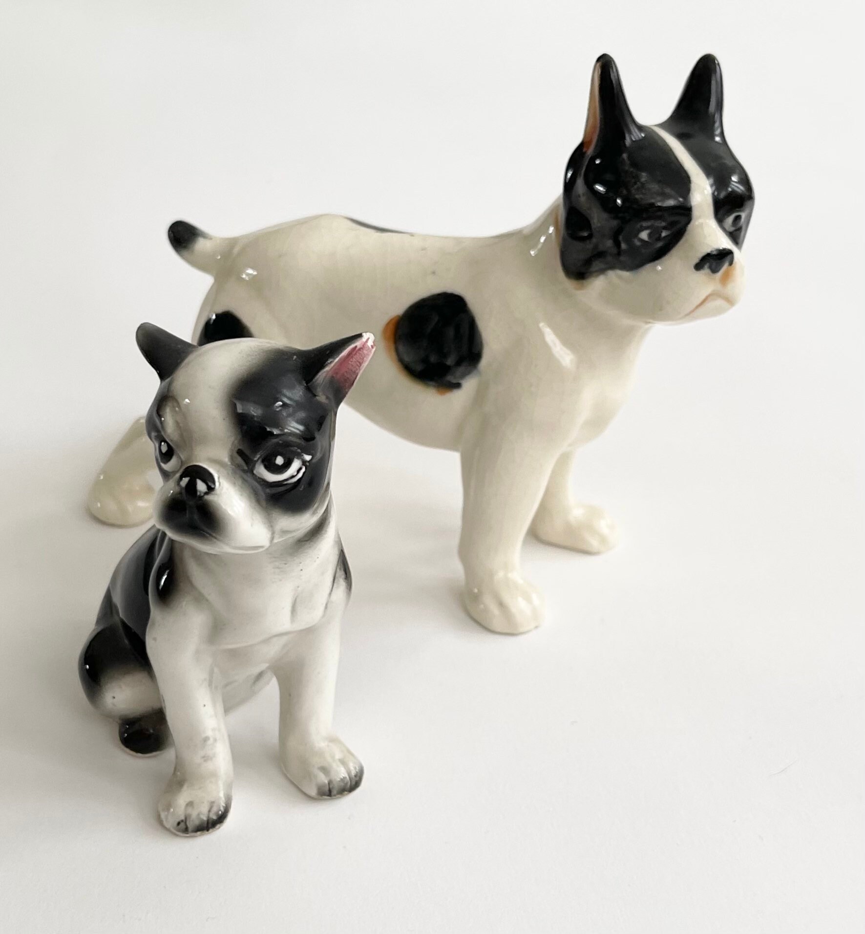 French Bulldog Figurines Made in Japan Lot of Two Black and White Ceramic Porcelain Dogs Knick Knacks