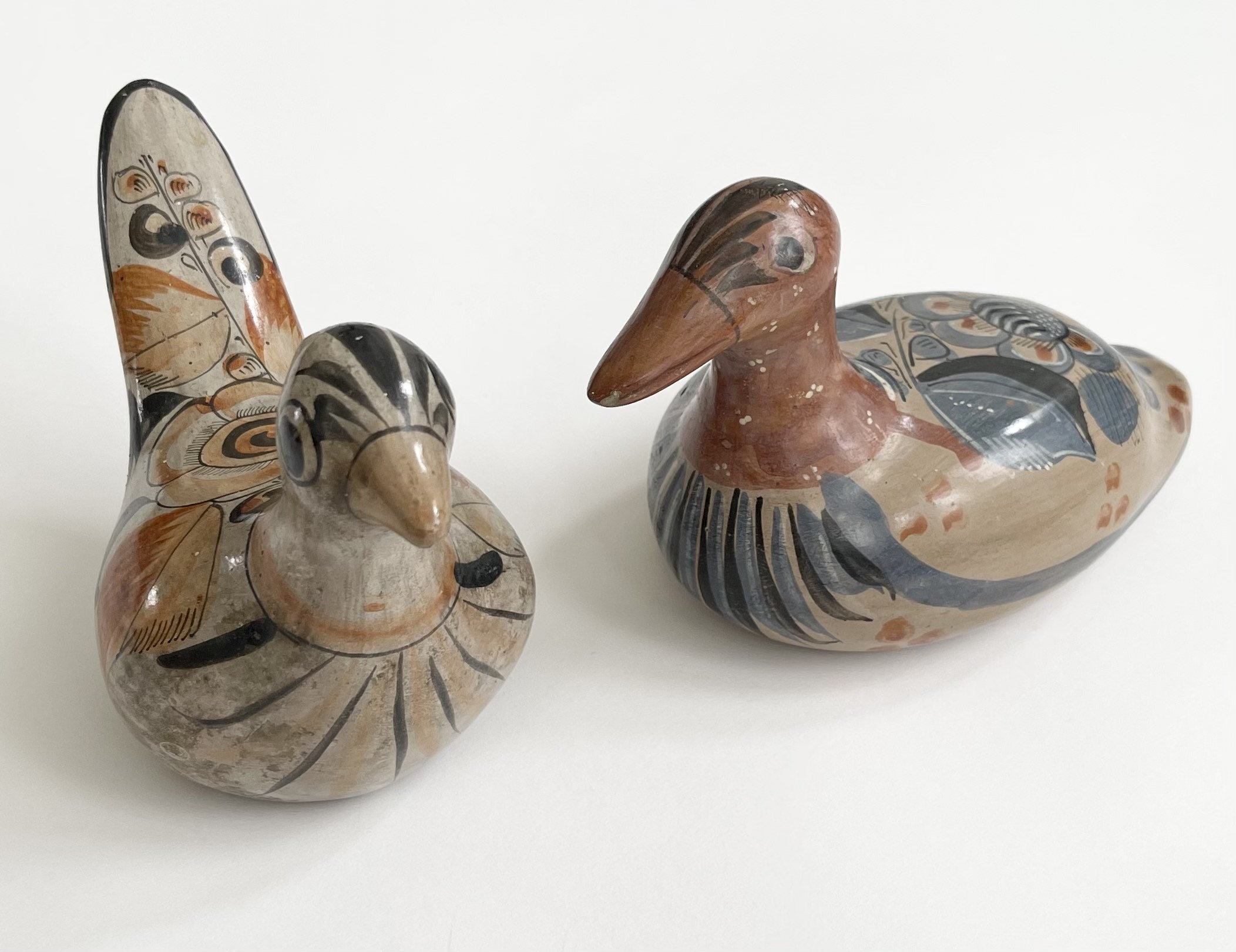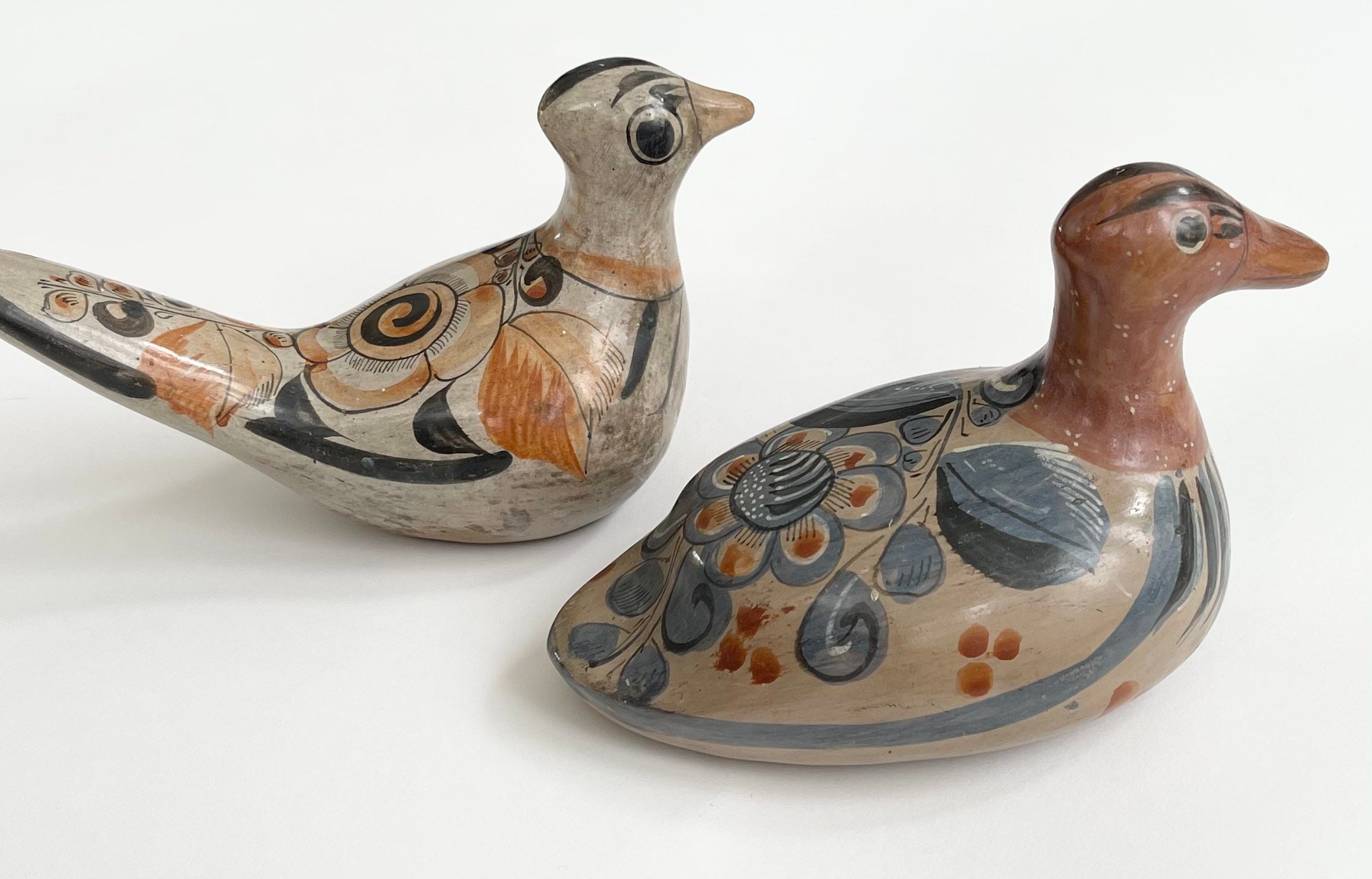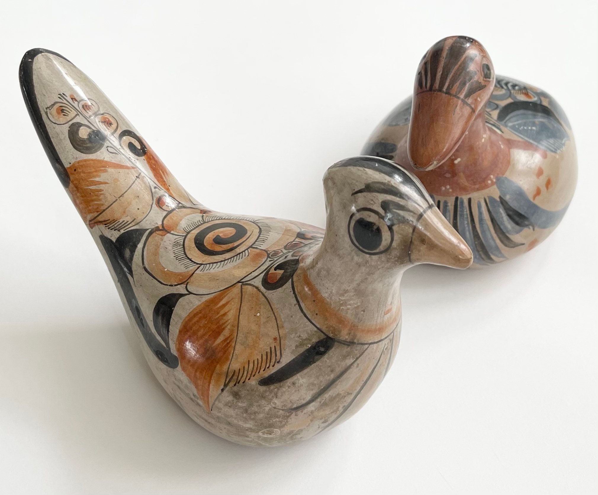 Lot of two vintage Mexican Tonala hand painted pottery birds