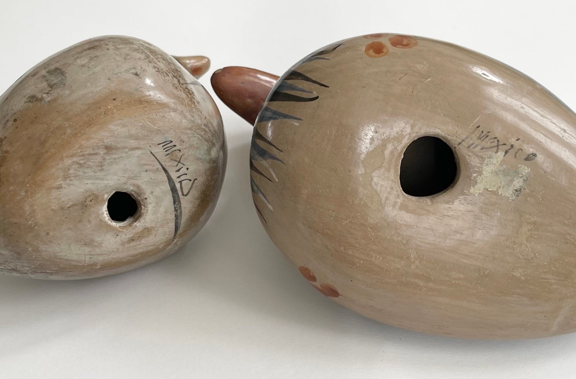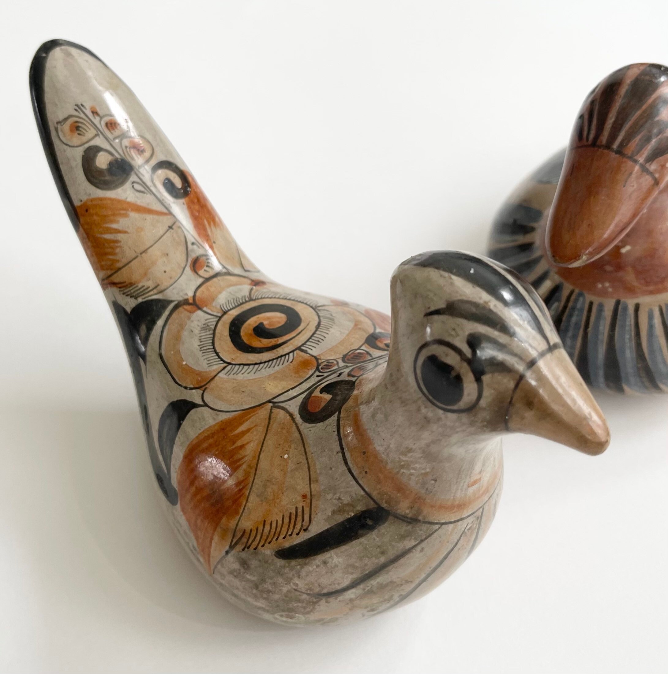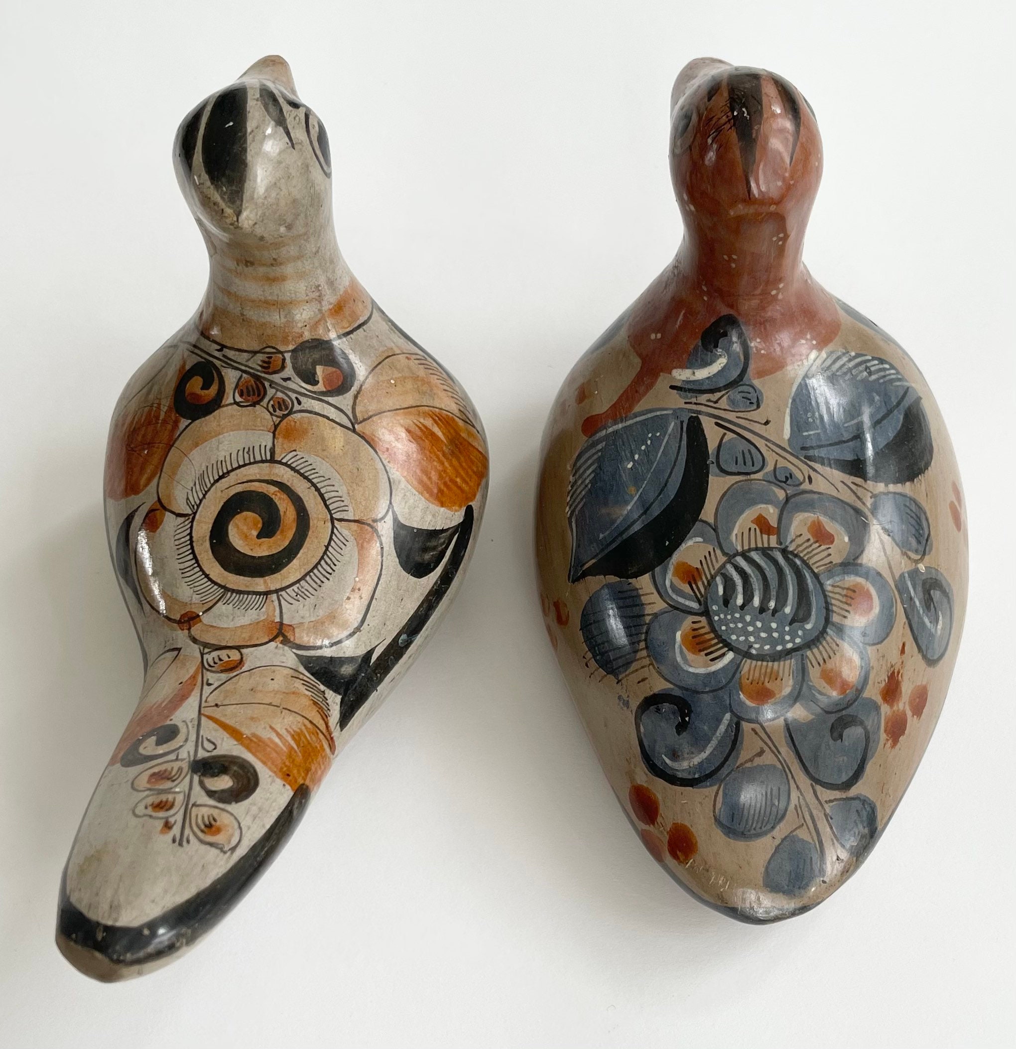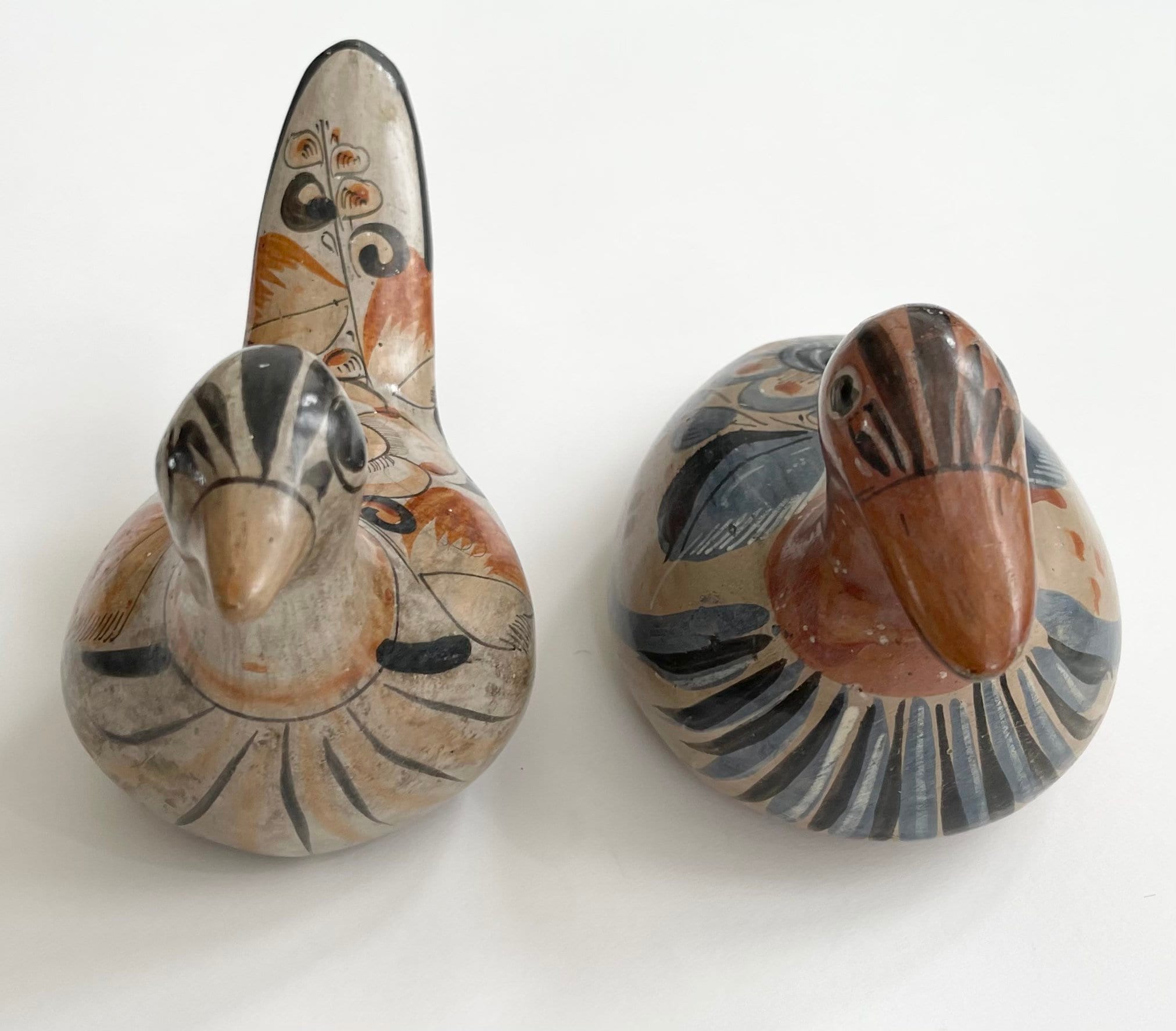 Tonala Mexican Pottery Bird Lot of 2 Bird Figurines Vintage Hand Painted Animal Ceramic Folk Art Made in Mexico