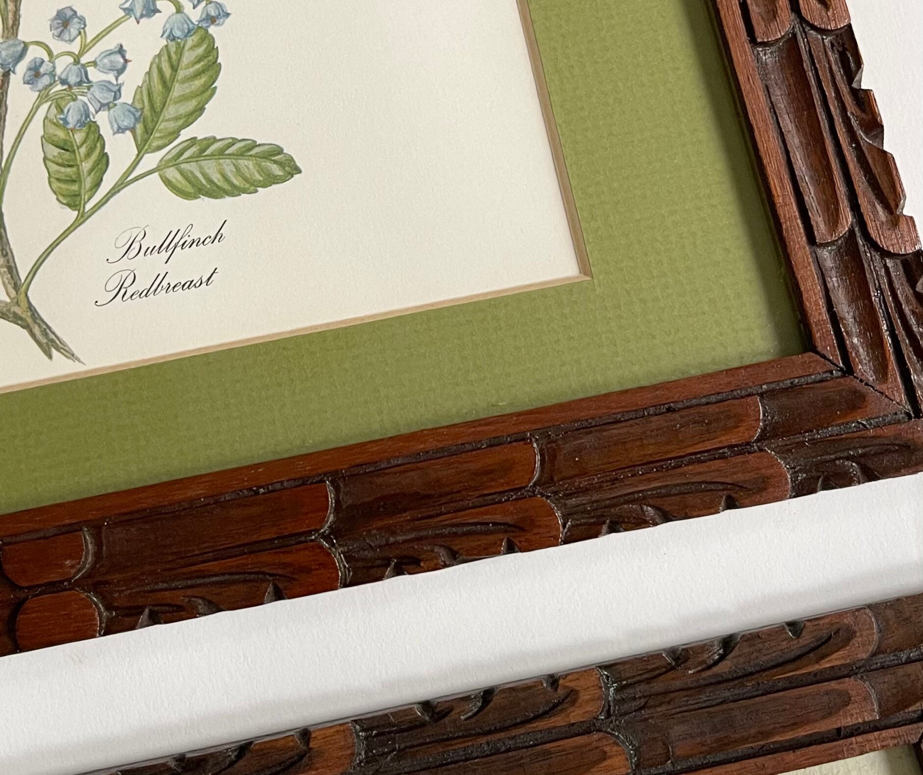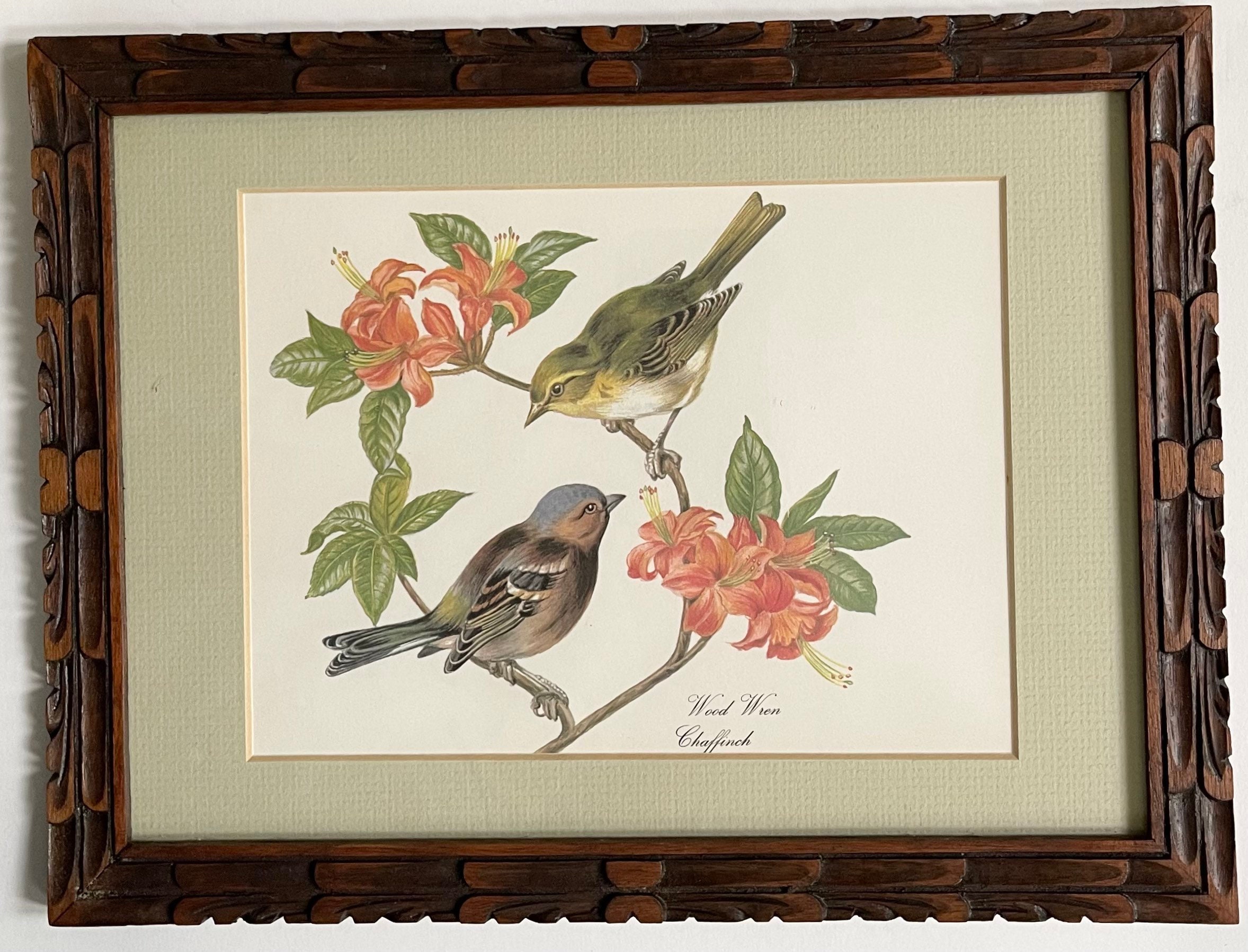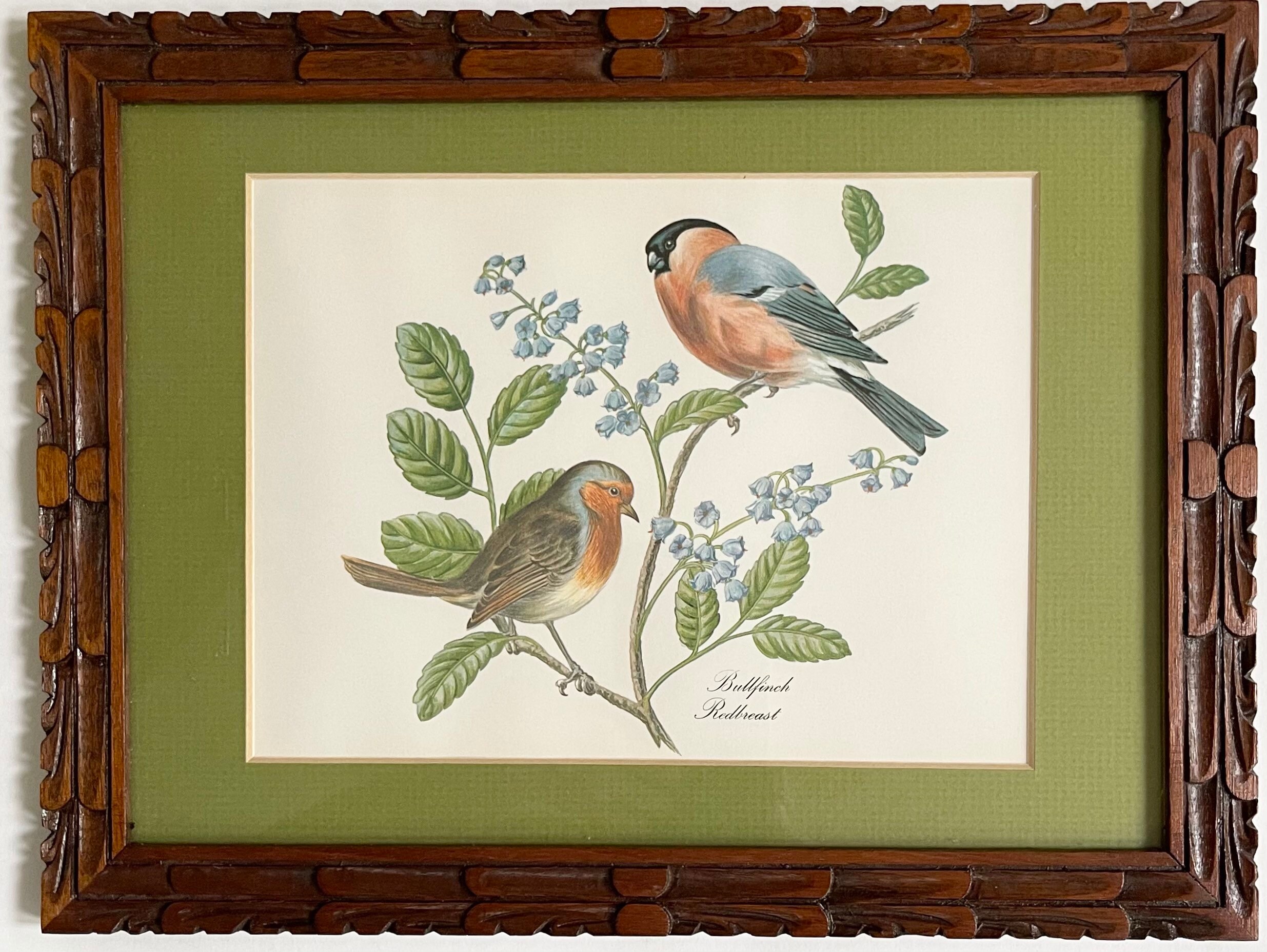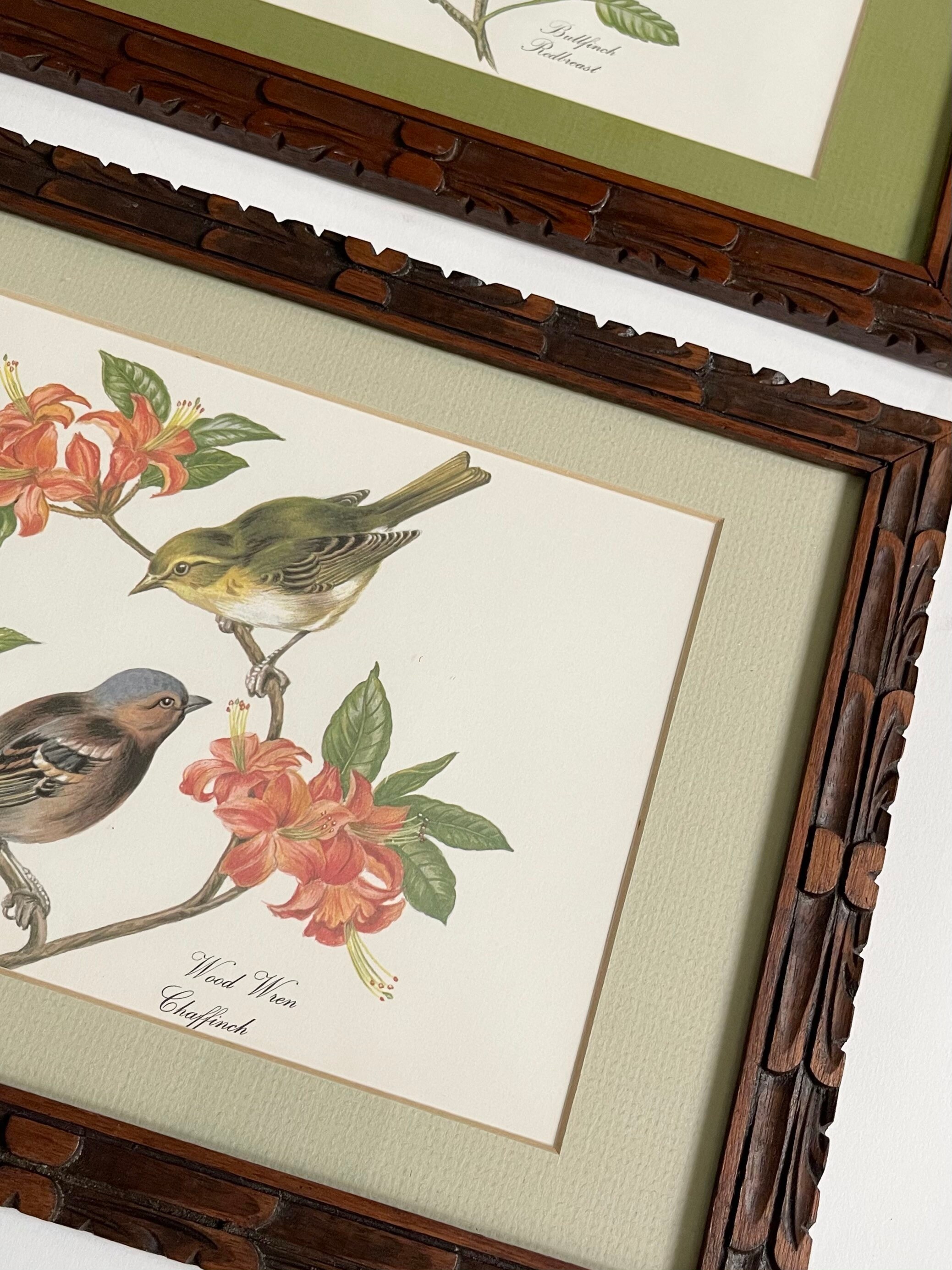 Charming set of two vintage framed bird and botanical art prints